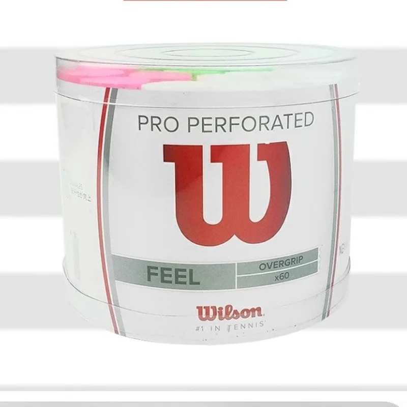 Imagine upgrading your tennis experience with this high-quality Wilson overgrip set. Designed for players seeking extra comfort, stability, and style, this set features durable, textured grips that ensure a firm hold even during intense matches. The grips come in various eye-catching colors, including navy blue, lime green, light blue, pink, yellow, orange, and teal, allowing you to personalize your racket’s look. Packaged neatly in a clear, round plastic container, you'll find either 15 or 30 pieces, perfect for replacement or multiple rackets. Each grip has small perforations along the sides for easy tearing, making installation quick and effortless. Whether on the court or practicing, this set delivers a reliable grip every time.