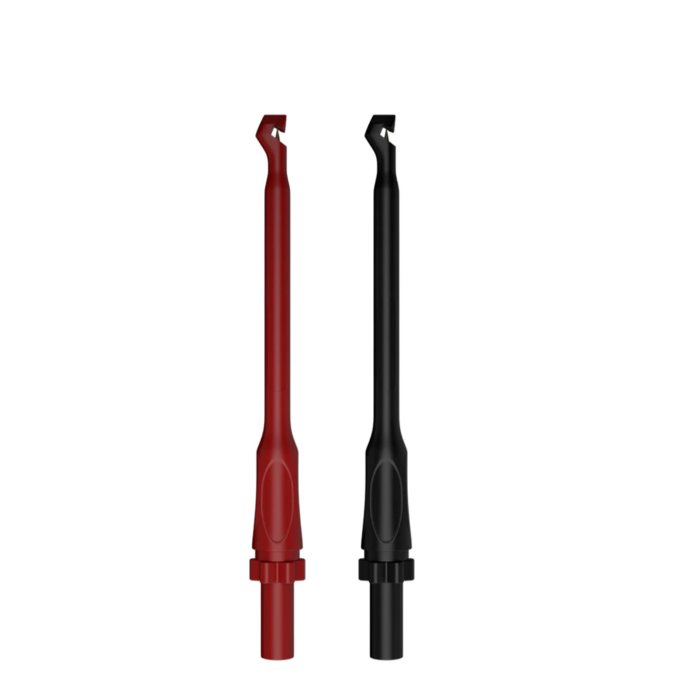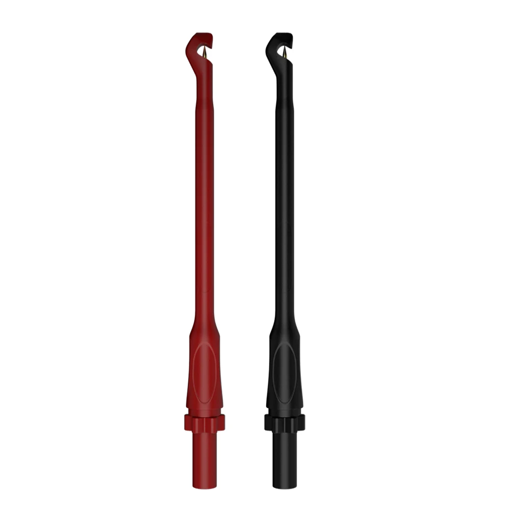Enhance your electrical testing capabilities with this set of two high-quality puncture wire-piercing probes, perfect for multimeter use. Featuring lengths of 195mm and 168mm, these probes are designed for safe, non-destructive testing via 4mm banana socket connections. The longer red probe provides precise, easy access in tight spaces, while the shorter red probe with a serrated blade allows for secure piercing into wires or insulating materials without damage. The black probe offers a discreet option for contact testing. Crafted from durable plastic and stainless steel, these probes ensure reliable performance and safety during troubleshooting, making them essential tools for professional and DIY electrical work.