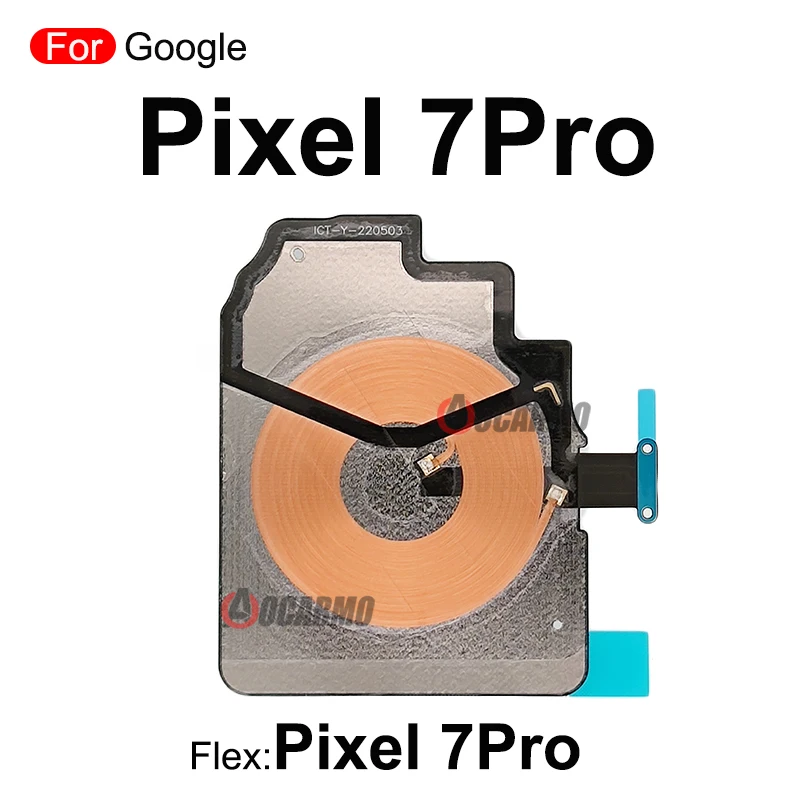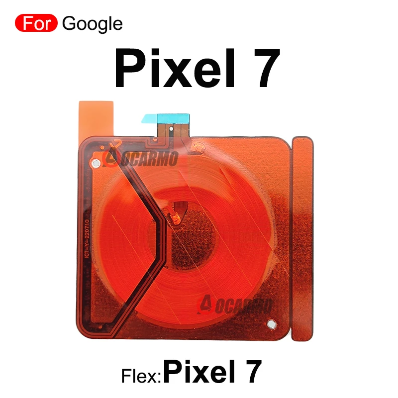 Upgrade your Google Pixel device with this high-quality replacement wireless charging induction coil and NFC module. Designed in a sleek bar shape, this component features a vibrant red inductive coil with a circular pattern and a contrasting blue signal antenna with irregular edges, offering both functional precision and modern aesthetics. Compatible with Pixel 6, 6A, 6Pro, 7, 7A, 7Pro, 8, 8Pro, 9, 9Pro, and 9Pro XL models, it also fits brands like Samsung and OnePlus. This durable, flexible part connects via black flex cables, ensuring seamless integration for reliable wireless charging, NFC functionality, and signal transmission within your device.