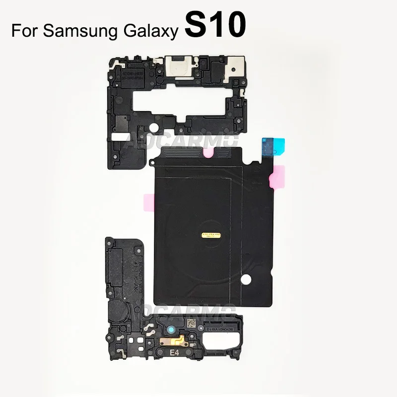 Enhance your Samsung Galaxy experience with this Wireless Charging Coil NFC Module Loudspeaker Signal Antenna Flex Cable, compatible with S7, S7 Edge, S8, S8+, S9, S9+, S10, S10+, and S10E models. Featuring a unique design with a transparent backing and a reddish-brown base, this module includes an orange metallic flex cable for optimal signal connection. Its black components contain essential circuitry, ensuring reliable performance for your smartphone. Each item is thoroughly tested for quality, providing you with the peace of mind that comes with a well-functioning component. Upgrade your device and enjoy seamless performance today!