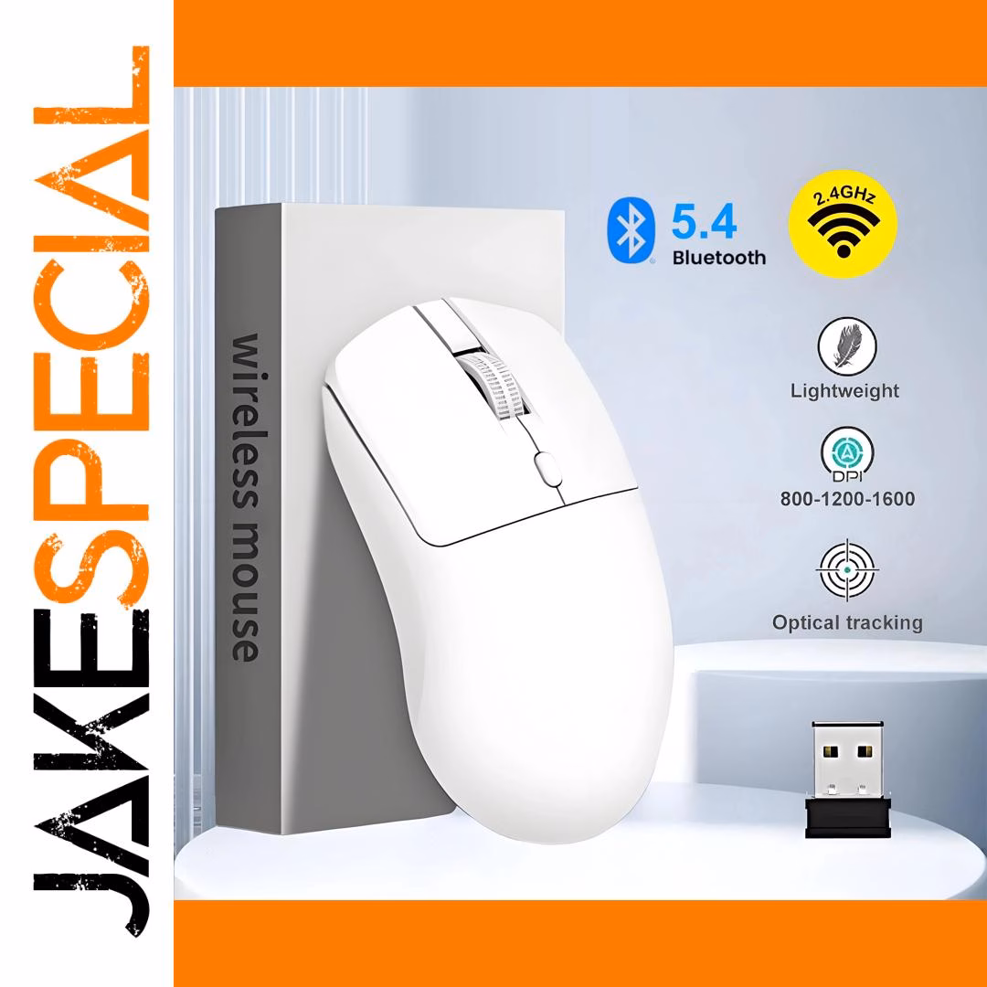Experience seamless comfort and high-tech performance with this sleek wireless mouse, crafted for both gamers and professionals. Its minimalist design features smooth, clean lines with a slightly curved ergonomic shape that fits perfectly in your hand, ensuring extended use without fatigue. The matte ABS surface adds a modern, refined look while providing a comfortable grip. Available in sophisticated black and white options, it seamlessly blends into any workspace or gaming setup. Equipped with Bluetooth 5.4 and 2.4G wireless connection modes, you enjoy a stable, responsive experience at distances up to 10 meters. The compact, lightweight design, combined with silent, smooth clicks, makes this mouse ideal for quiet environments. The ultra-durable construction guarantees long-lasting performance, supporting demanding tasks with ease and style.