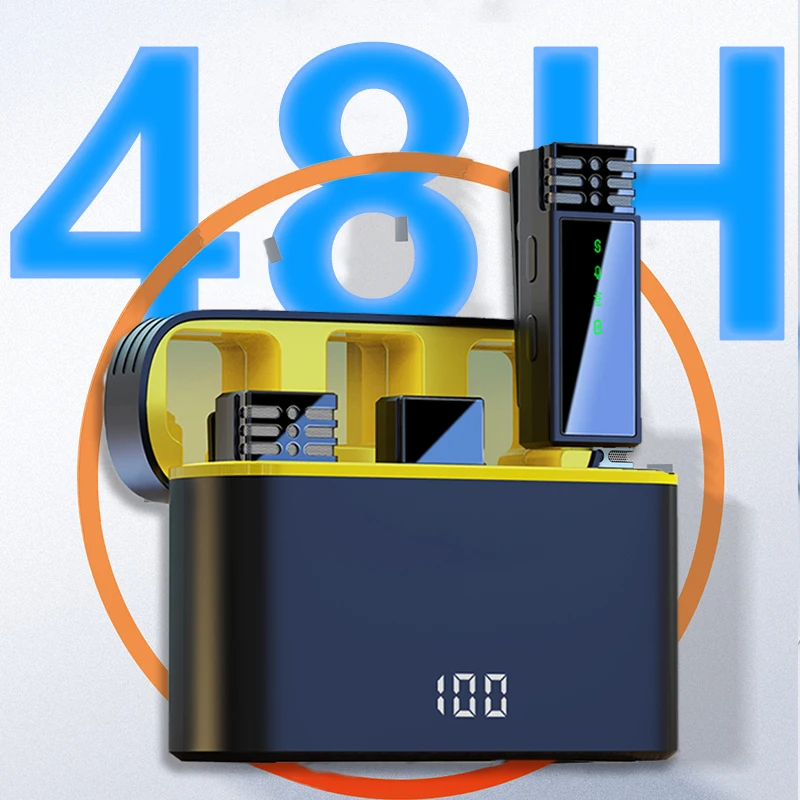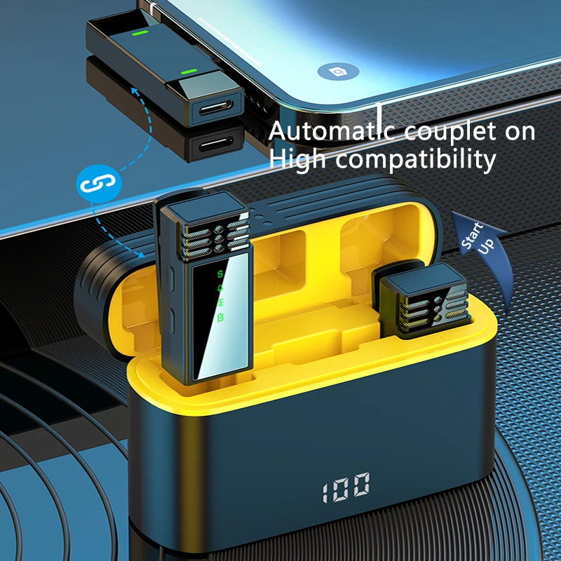 Experience effortless audio recording with this Wireless Lavalier Microphone, perfectly designed for vloggers, interviewers, and live streamers. The sleek black and yellow charging case not only protects but also recharges your microphone, allowing you to focus on capturing crystal-clear sound. This compact system features two transmitters that deliver professional-grade audio, equipped with advanced noise cancellation technology that effortlessly filters background sounds. With plug-and-play convenience, clear visuals, and a user-friendly design, you will find this microphone indispensable for your recording needs, ensuring you stay ahead in your audio game.
