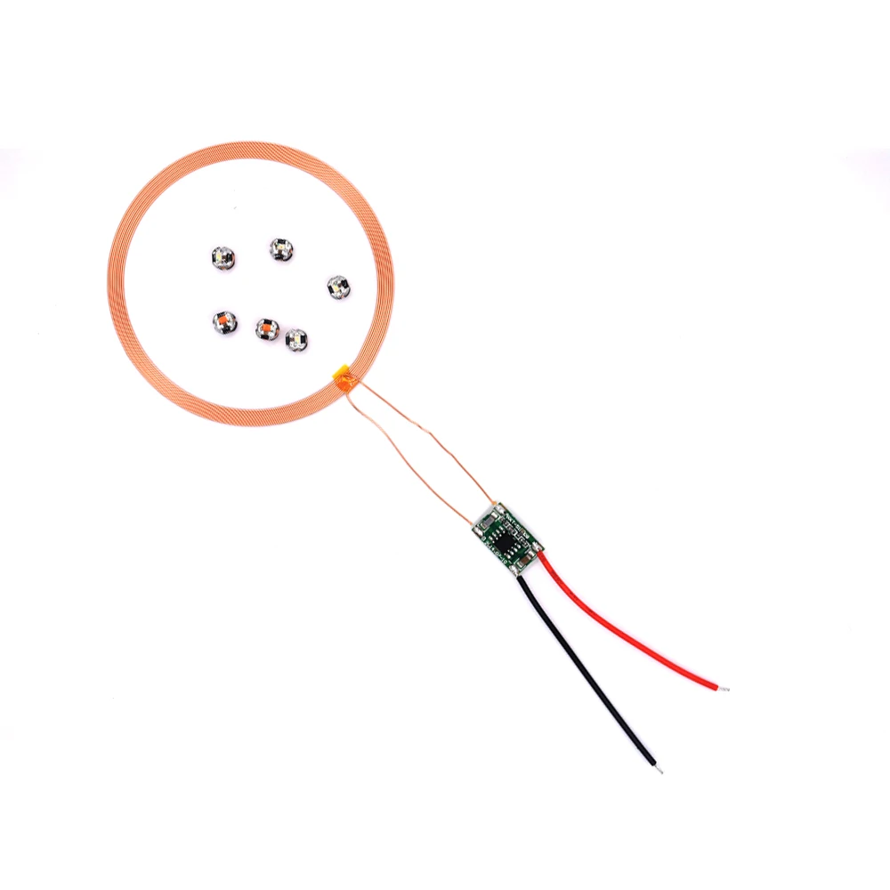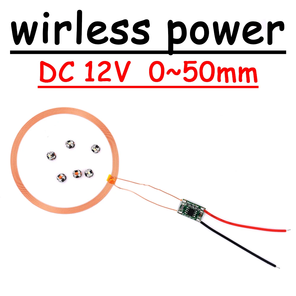 Experience seamless wireless energy transfer with this innovative 12V DC power supply module designed specifically for LED lighting and DIY projects. Featuring a sleek circular copper coil with a 75mm outer diameter and 1mm wire thickness, it offers a reliable transmission distance of up to 50mm. This system can simultaneously power approximately 30 receivers, making it perfect for complex lighting setups. Included are six colored LED receivers—two red, two green, and two blue—that showcase vibrant, bright illumination when powered. The small receiver coils, measuring 5.4mm by 5mm, are compact but deliver impressive lighting effects. With its modern design and high compatibility, this module is ideal for enthusiasts aiming to create elegant, wireless illuminated displays.