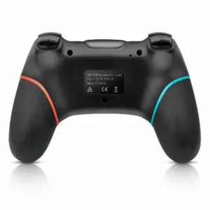 Experience a new level of gaming comfort with this sleek wireless Switch Pro controller. Designed with a modern and ergonomic shape, it fits naturally in your hands for hours of play without fatigue. Its matte black finish is accented by vibrant blue and red highlights along the top edges and rims of the analog sticks, adding a stylish and dynamic touch to your setup. The textured grips ensure a secure hold, even during intense gaming moments. With reliable Bluetooth 2.1+EDR connection, quick pairing is effortless, and lag-free gameplay is guaranteed. The built-in dual-motor gyroscope combined with 6-axis vibration creates immersive tactile feedback, making every move feel realistic. Elevate your gaming experience using this premium controller as the perfect companion for your Switch adventures.