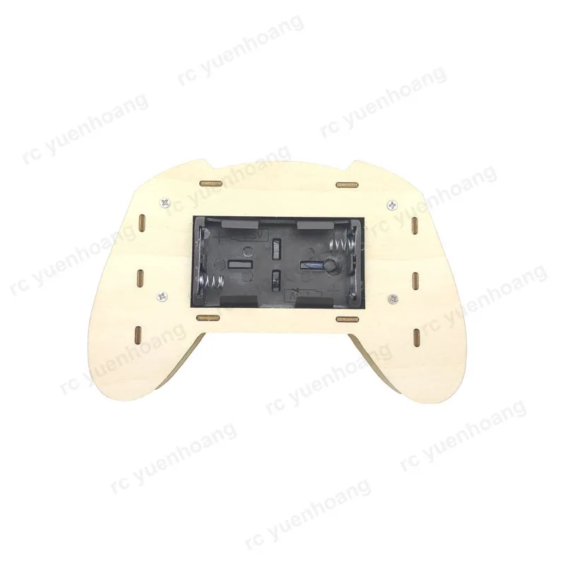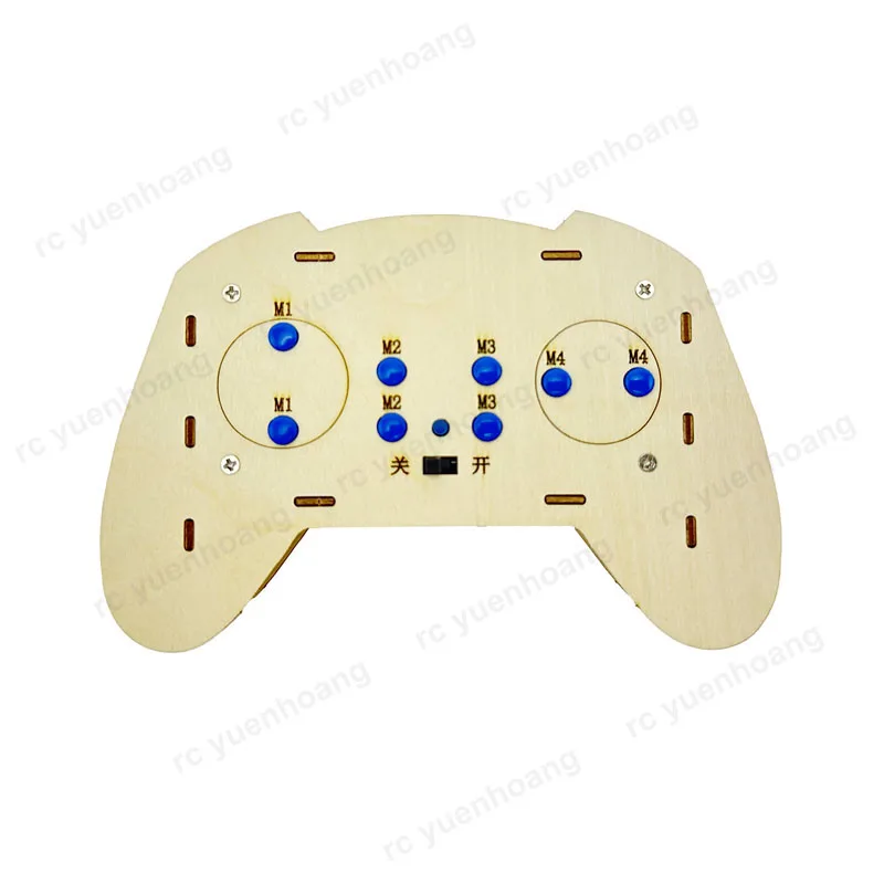 Imagine upgrading your DIY model car with this stylish and functional wireless system kit, featuring a natural wooden shell that gives it a warm, handcrafted appeal. The ergonomic shape resembles a classic game controller, offering comfortable grip and easy handling. Its light-colored wood surface, with visible grain texture, blends natural beauty with a modern touch. The vibrant blue rubber buttons, arranged in two circular clusters, add a splash of color and intuitive control. The sleek black circuit board provides a minimalist contrast, with white labels and ports ensuring clarity and effortless connections. Perfectly balanced between organic aesthetics and technical precision, this kit transforms your remote control experience into something uniquely elegant and reliable, making your model vehicle stand out with confidence and style.
