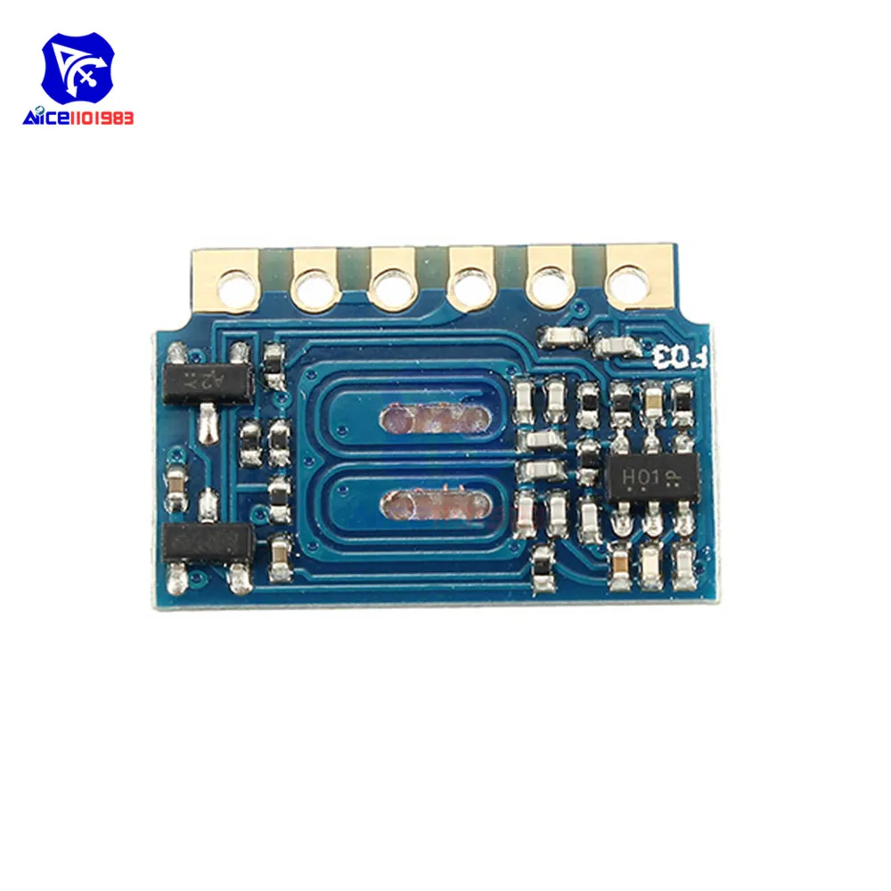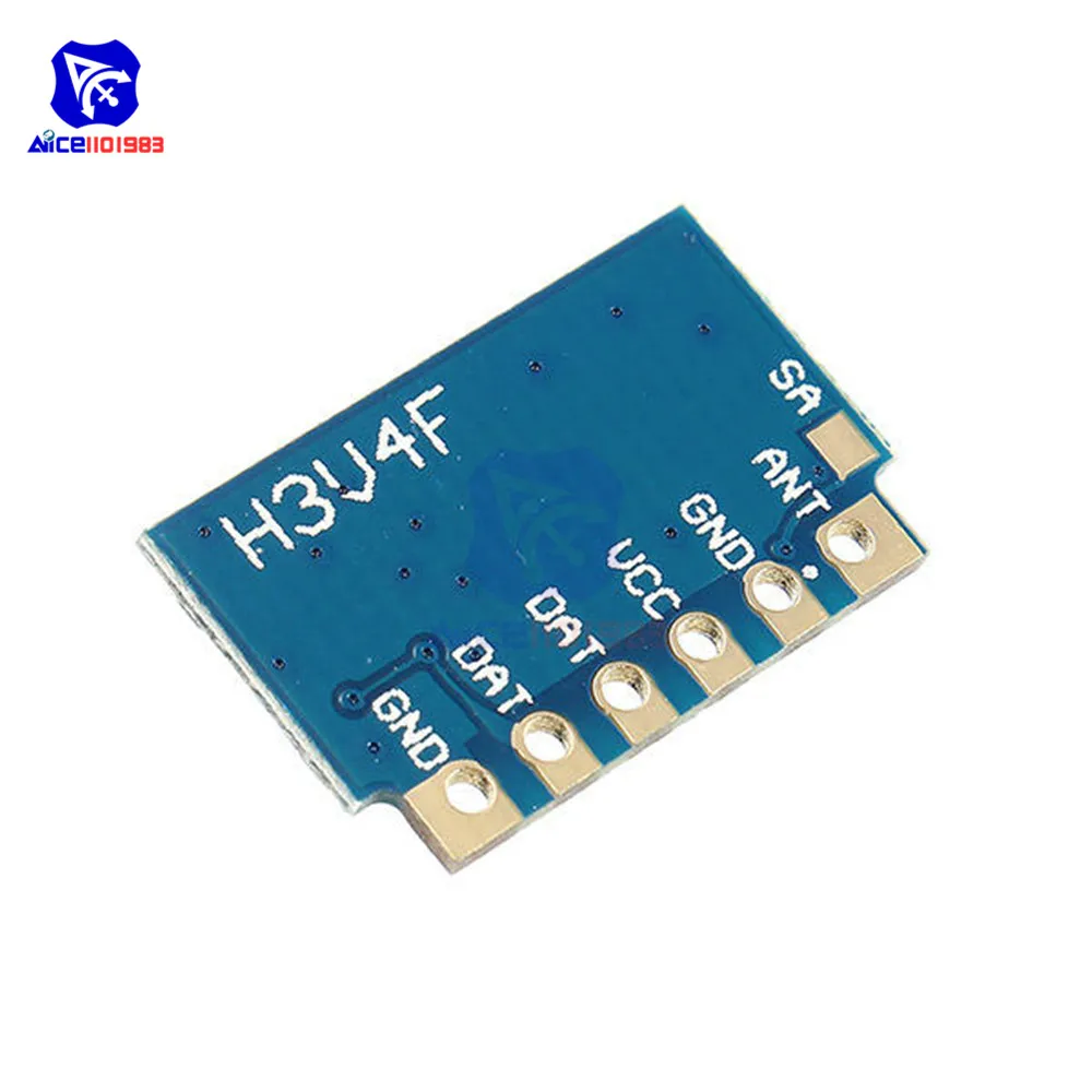 This compact wireless receiver module measures 12.0 x 18.0 x 2.10 mm and operates at either 433 MHz or 315 MHz with a sensitivity of 105 dB. Powered by 3V and consuming just 0.28 mA of current, it features ASK modulation for reliable, low-power wireless communication. Designed for applications requiring high sensitivity and efficient power use, this new SOP-packaged module performs effectively within temperatures ranging from -20°C to 65°C. Its organized, modern design showcases a vibrant blue PCB surface with black and white components, transparent oval protective covers, and gold-plated connection pads, making it an ideal choice for seamless integration into your electronic systems.