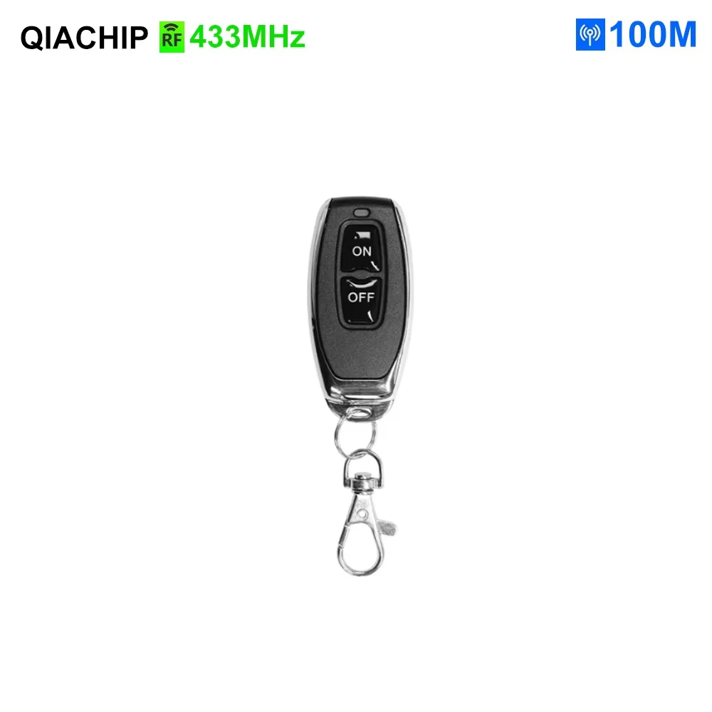 Imagine effortlessly managing your lights, motors, or pumps with this sleek, black RF wireless remote control switch. Its modern, streamlined rectangular design with softly rounded edges combines practicality with contemporary style. The textured plastic surface ensures a firm grip and durability, while the compact size of 105 x 51 x 30mm makes it unobtrusive in any installation. The remote controls, measuring just 60 x 30mm, are ergonomically designed for comfort, featuring two clearly labeled white buttons—”ON” and “OFF”—for simple operation. The included metal keychain allows easy portability. With a long-range fuzzy of up to 70 meters in open space, this system provides reliable wireless control for various applications, giving you peace of mind for all your automation needs.
