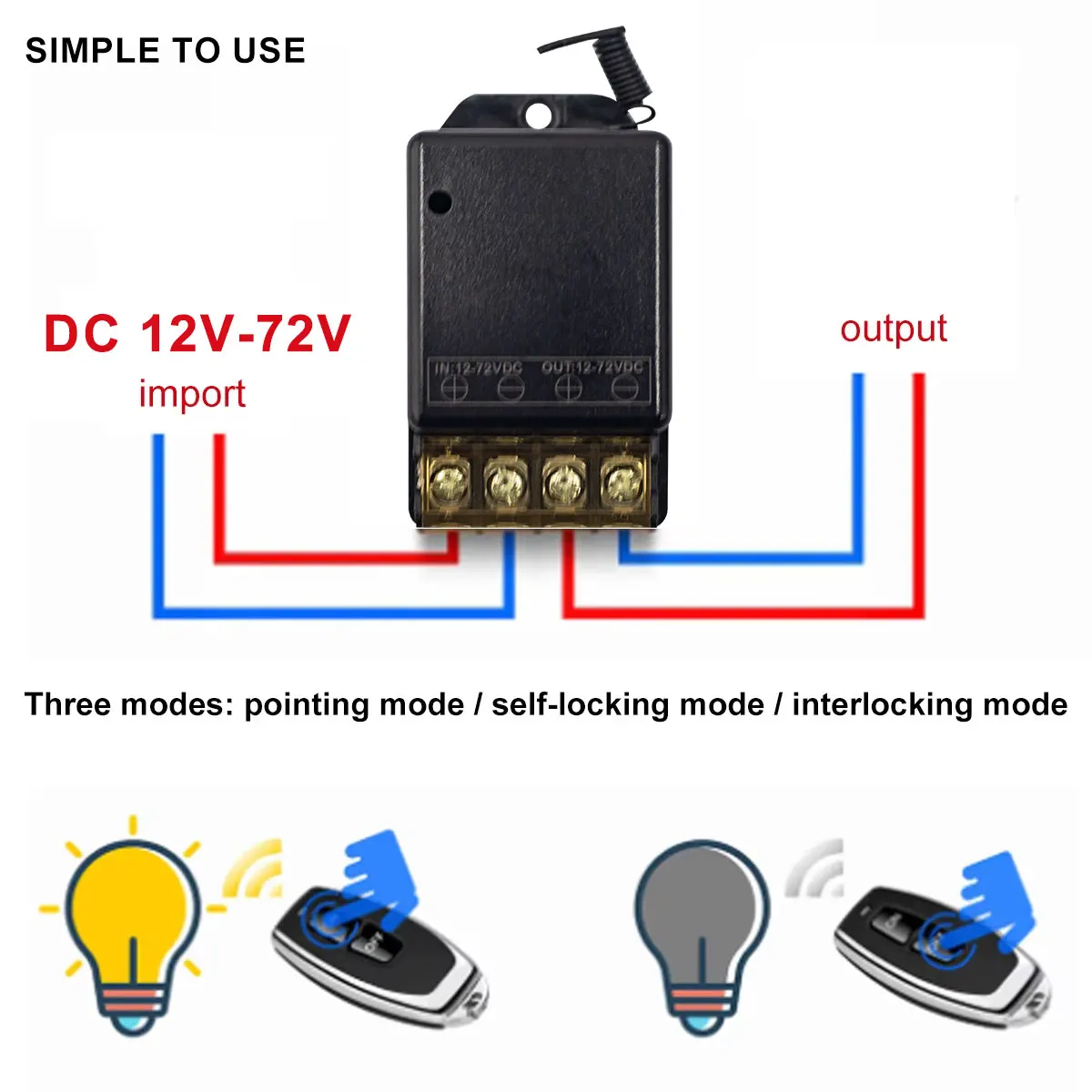 - High-power 30A relay capable of handling DC voltage from 12V to 72V, suitable for multiple electrical devices requiring robust switching capabilities.