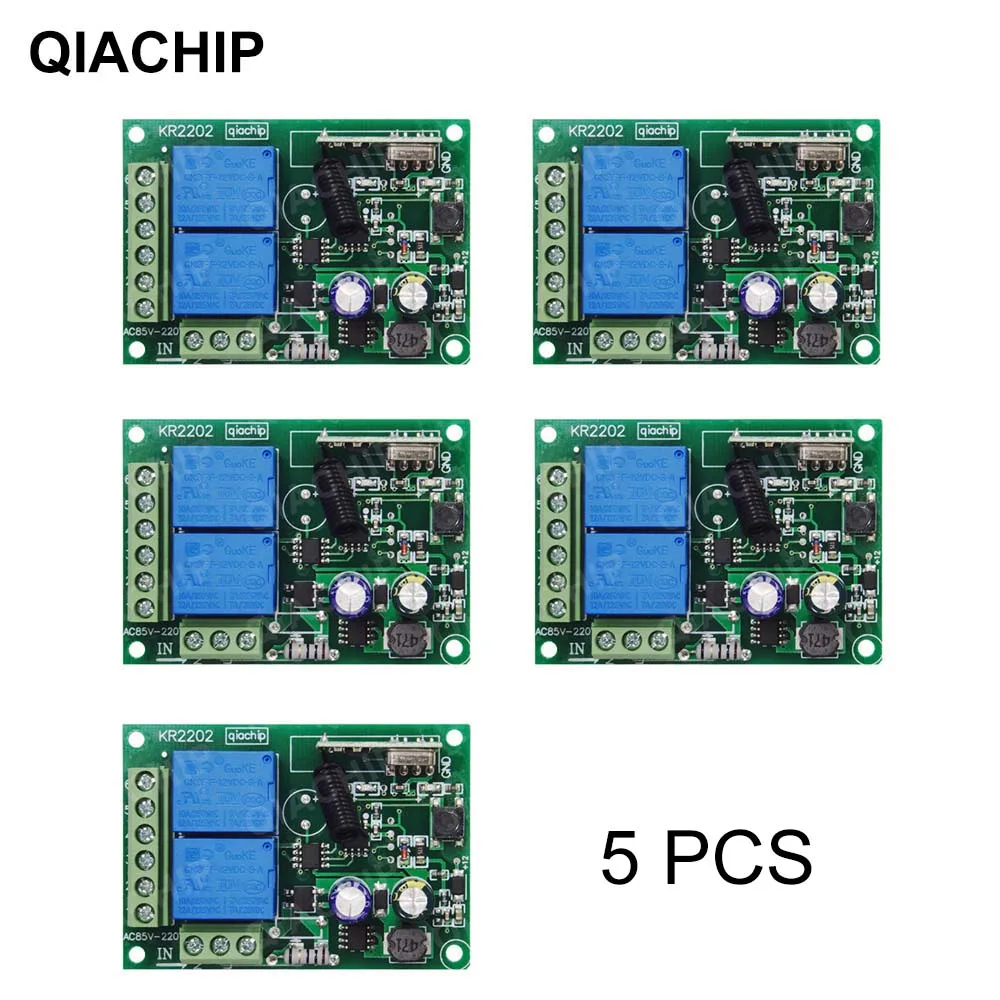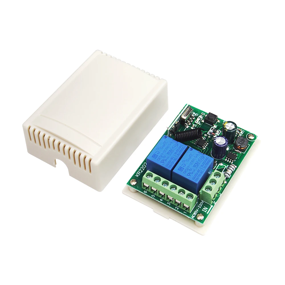 - The receiver model KR2202-4, measures 7.3cm by 5.2cm by 2.5cm, features a green PCB, and supports AC voltage from 85V to 250V for flexible installation.