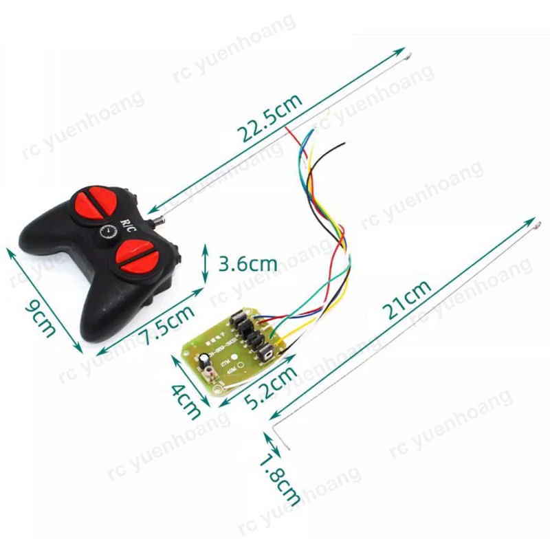 - Operates at 27MHz frequency with two available configurations: 4-channel full kit or 2.4G full kit; suitable for various DIY remote control vehicle projects.