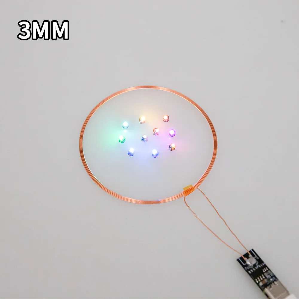 Enhance your DIY projects with these vibrant wireless power supply LED lamp beads, available in 3mm, 4mm, and 5mm diameters, in colors including warm, white, blue, green, and red. Each pack contains 5 high-quality ABS plastic beads that glow brightly when paired with a compatible wireless induction coil with an outer diameter of 7cm and a sensing range of up to 70mm. The system operates at 5V input, powering from common sources like mobile chargers or power banks. Perfect for creative scene layout and decorative displays, these miniature LED beads create eye-catching, dynamic lighting effects, making your projects stand out.