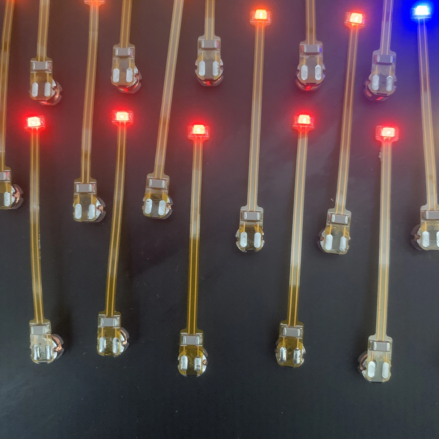Experience the flexibility and vibrant colors of this innovative wireless LED light set. Designed with adult DIY enthusiasts in mind, this product allows you to easily incorporate bright, colorful lighting into your projects or home decor. The 5-piece kit features ultra-thin, bendable FPC cables that measure 50mm in length, with a mere 2mm width, making installation in tight or intricate spaces effortless. Each small square LED emits a powerful, vivid glow in various colors, including blue, green, ice blue, orange, pink, purple, red, warm white, white, and yellow. Lightweight and low-profile, these LEDs operate wirelessly through induction, revolutionizing traditional lighting setups for creative uses such as decorative accents, custom displays, or innovative electrical projects.
