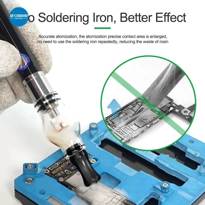 - Equipped with a ceramic atomizing core, this flux pen guarantees accurate atomization, enlarging the contact area and reducing rosin waste for efficient fault detection.