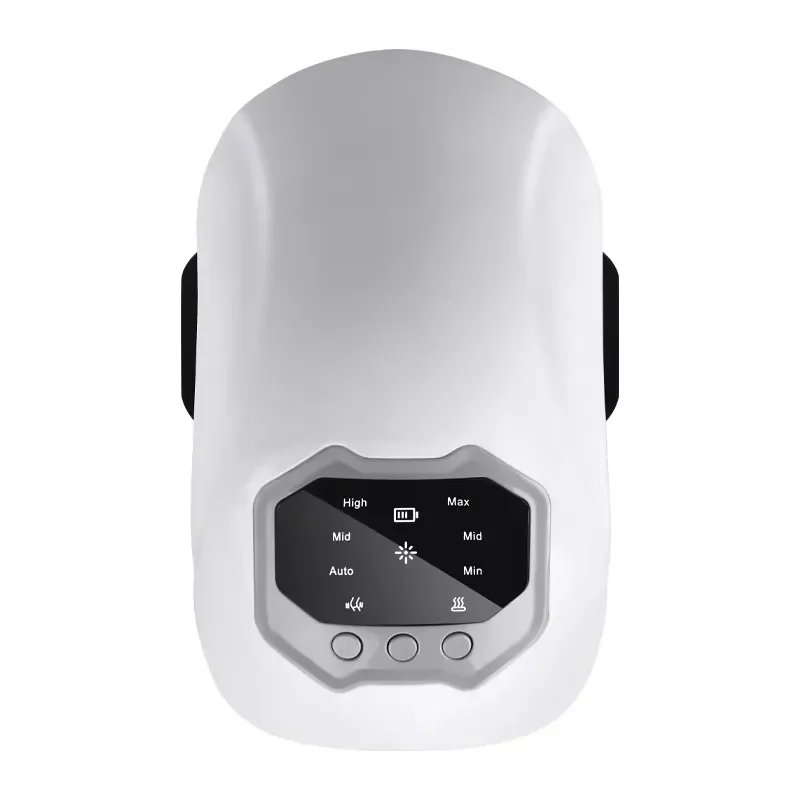 Experience unparalleled comfort with this sleek, white wireless smart knee massager, expertly designed for personalized pain relief and joint care. Its modern oval shape and glossy surface create a clean, sophisticated look that seamlessly blends into your daily routine. Compact and ergonomic, it comfortably contours around your knee or leg, offering an easy-to-use experience enhanced by a high-tech black digital control panel. This device combines advanced features like targeted LED therapy, adjustable heat, vibration massage, and breathable 3D airbags, delivering therapeutic relief wherever you go. Feel confident knowing you are investing in a reliable, health-focused product crafted with safety and efficiency in mind, helping you regain mobility and soothe knee discomfort effortlessly.