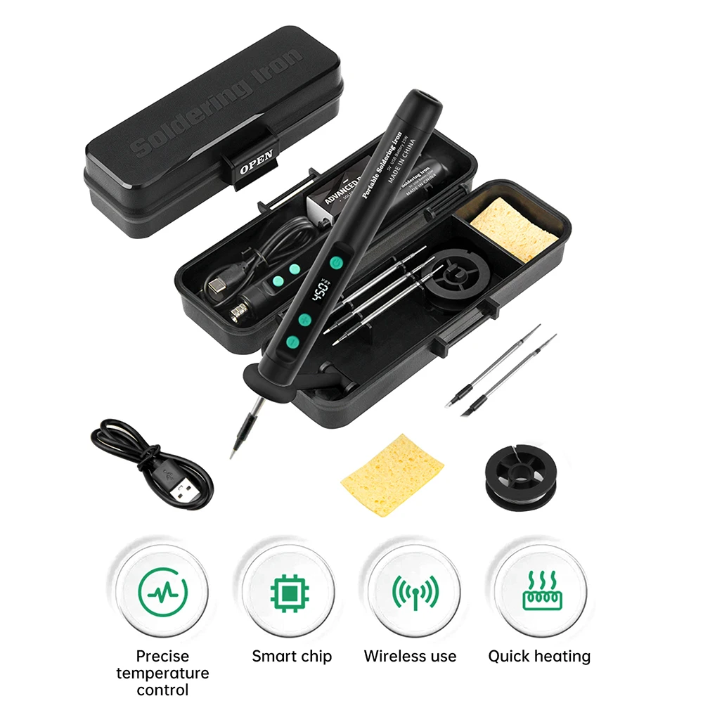 Imagine confidently tackling your electronics repairs with this efficient and portable soldering tool at your side. Its sleek design and versatile features make it ideal for precise work on mobile devices, circuit boards, and artistic projects involving pyrography. Whether you're a professional technician or a passionate hobbyist, this soldering iron offers the performance, portability, and style to meet your needs. Elevate your repair kit today and enjoy the convenience of quick heat-up, accurate temperature control, and wireless freedom. Invest in this reliable, high-tech tool and experience the difference it makes in your projects.