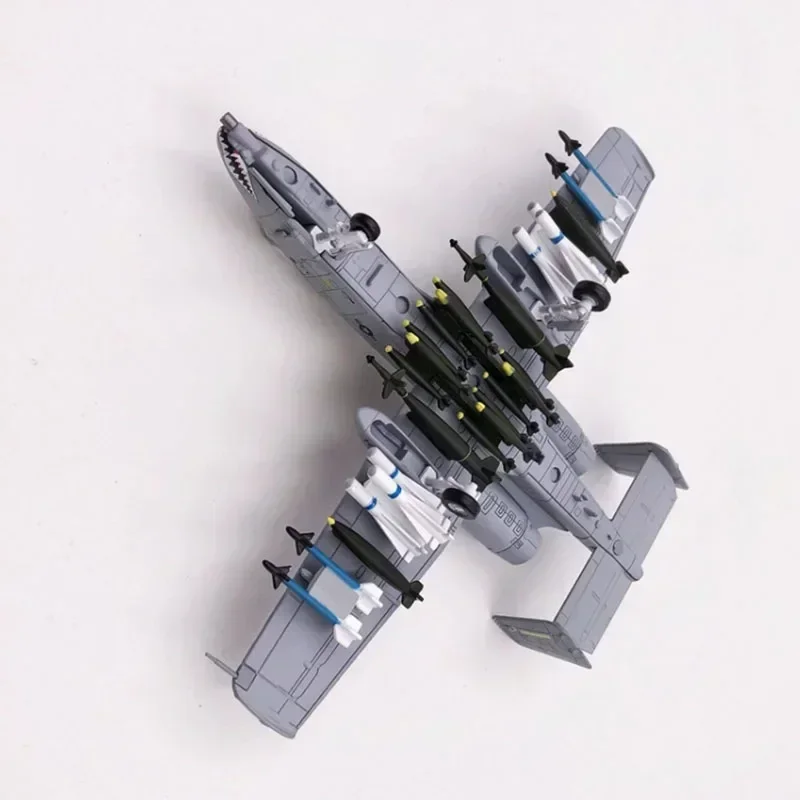 Imagine adding a striking and highly detailed combat aircraft to your collection, truly capturing the essence of military ingenuity. This WLTK diecast metal model of the A-10 attack aircraft boasts a sleek, metallic gray finish that evokes a powerful, authentic appearance. Its finely etched panel lines and structural accents provide a textured, high-quality feel that showcases expert craftsmanship. The bold shark mouth design with sharp teeth and expressive eye detail adds a fierce, aggressive aesthetic that commands attention. Measuring approximately 16.5 centimeters in length and 17 centimeters wingspan, it’s perfectly scaled for display. Whether you're a collector or enthusiast, this model elevates your collection with its realism and durability, making it a captivating centerpiece.
