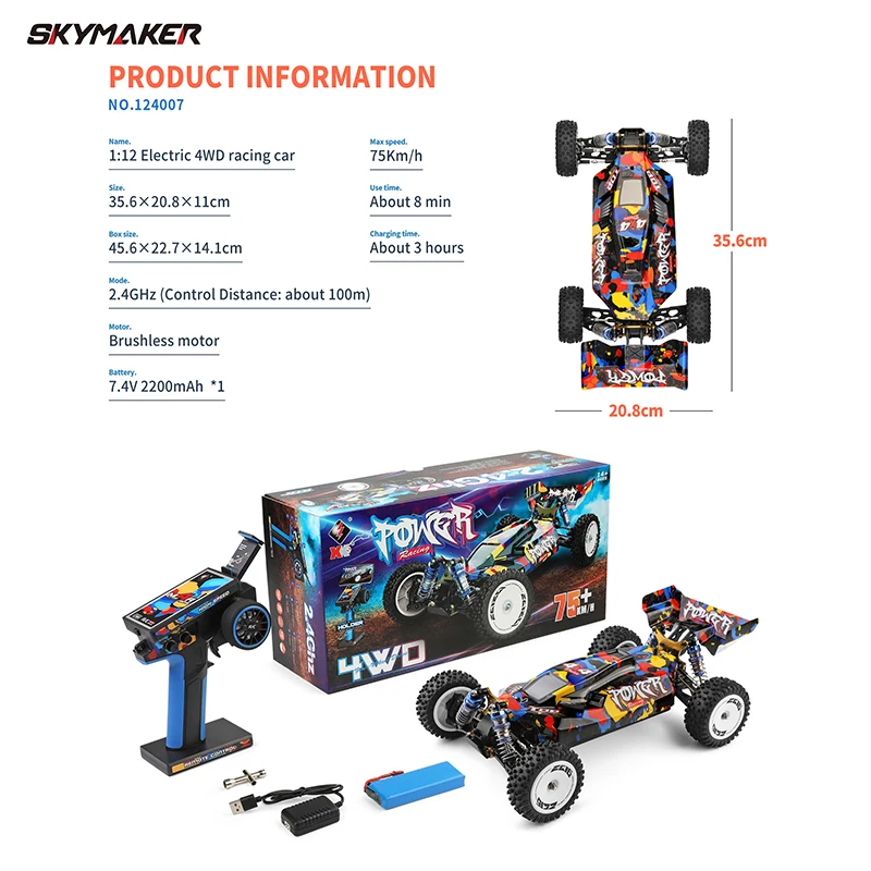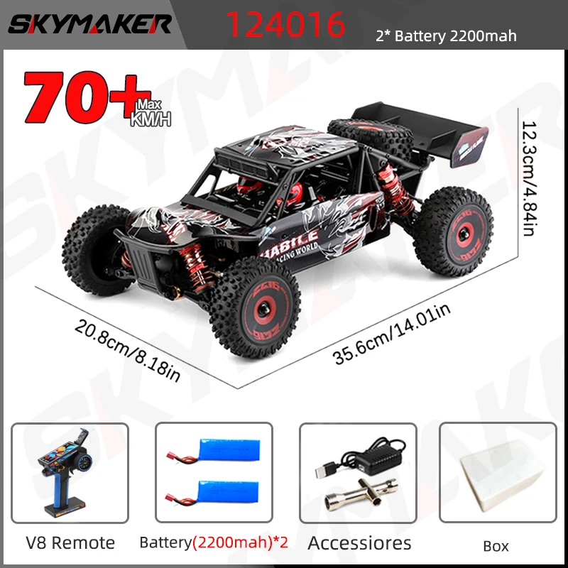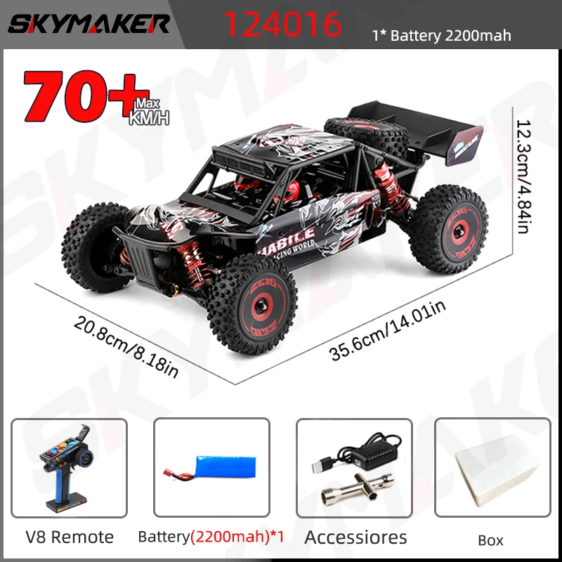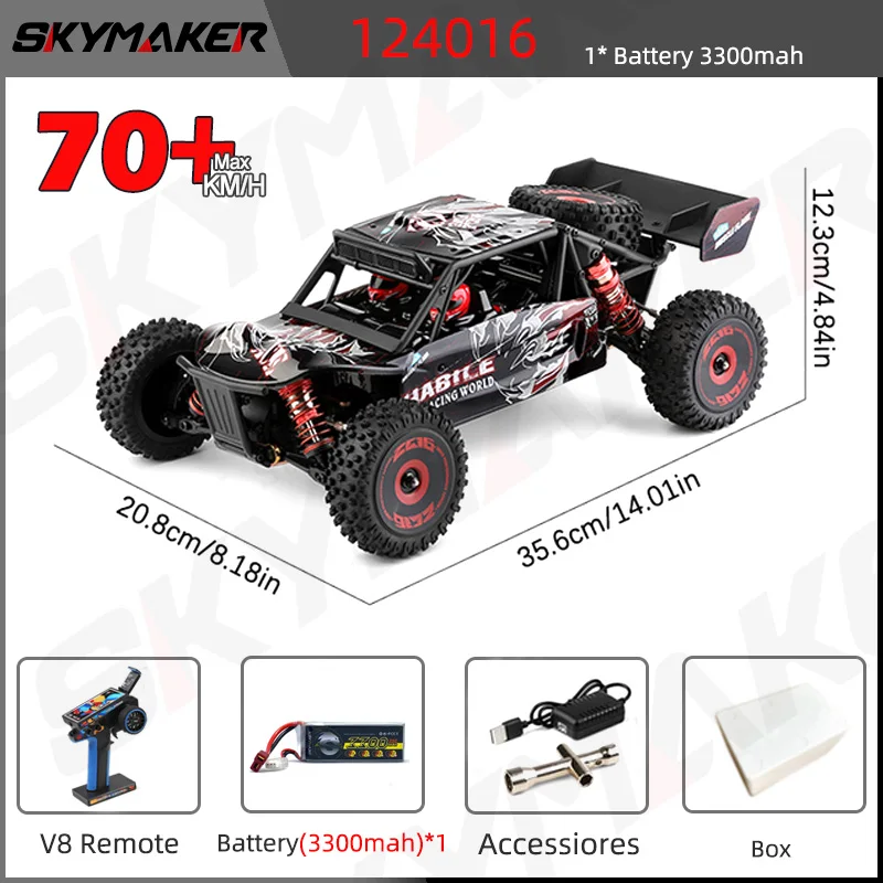 The WLtoys 124007/124008 Brushless RC Car delivers thrilling off-road adventures with its impressive 75Km/H speed. Designed for enthusiasts, this 1:12 scale model features a durable metal and plastic body, ensuring stability and longevity. Its 4WD capability makes it perfect for various terrains, providing a smooth and responsive driving experience. With a powerful brushless motor and a range of up to 100 meters, you can enjoy extended playtime with a runtime of approximately 8 minutes. The remote control operates on a 2.4G frequency, allowing multiple vehicles to run simultaneously without interference, making it ideal for racing events and outdoor fun.