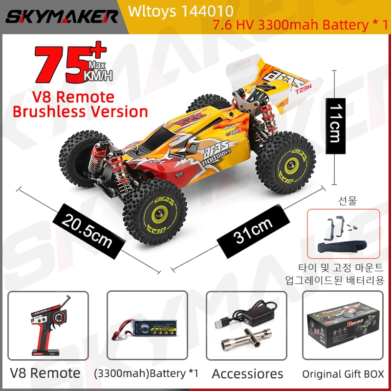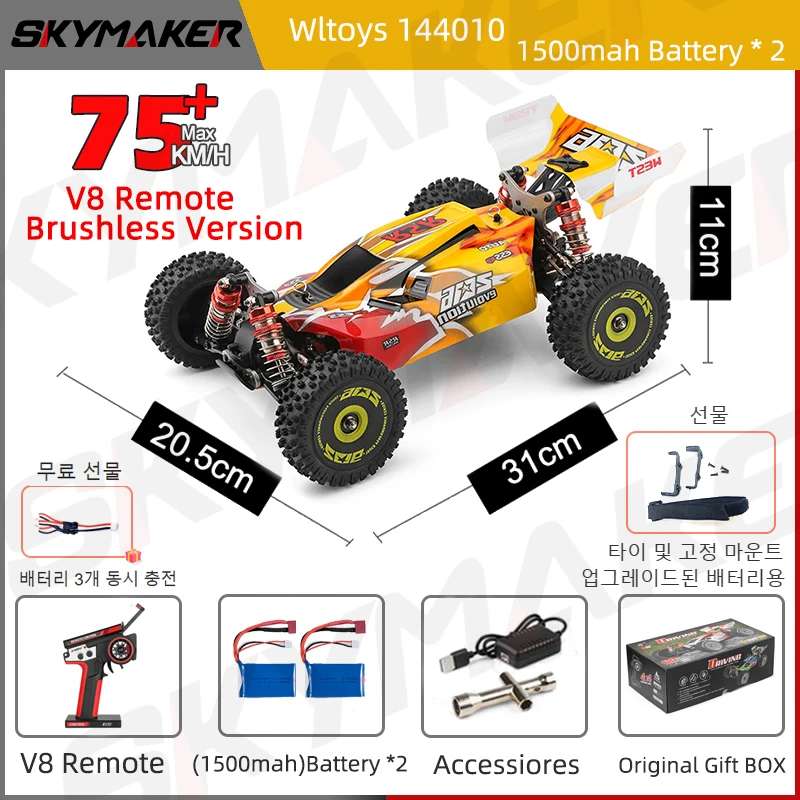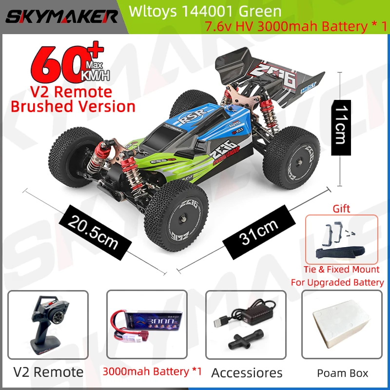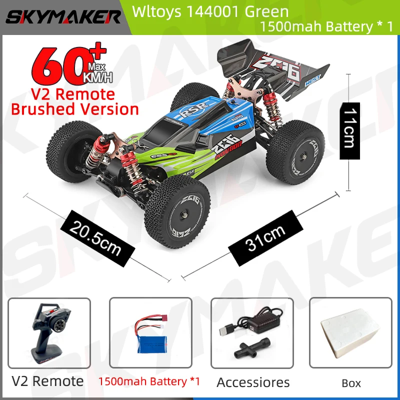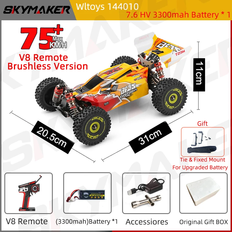 The WLtoys 144001 144010 Brushless RC Car is the ultimate off-road racing machine designed for enthusiasts seeking adrenaline-pumping action. Equipped with a powerful 20000RPM motor and a robust 4WD system, this electric marvel effortlessly reaches speeds up to 60 km/h. Its meticulous design ensures precision handling whether you’re racing on rugged terrain or smooth surfaces. With a remote control range of up to 100 meters, you can navigate the action like a pro. The durable metal chassis and high-quality components promise longevity and top-notch performance, making this RC car a perfect gift for those who crave speed and excitement in their hobby.