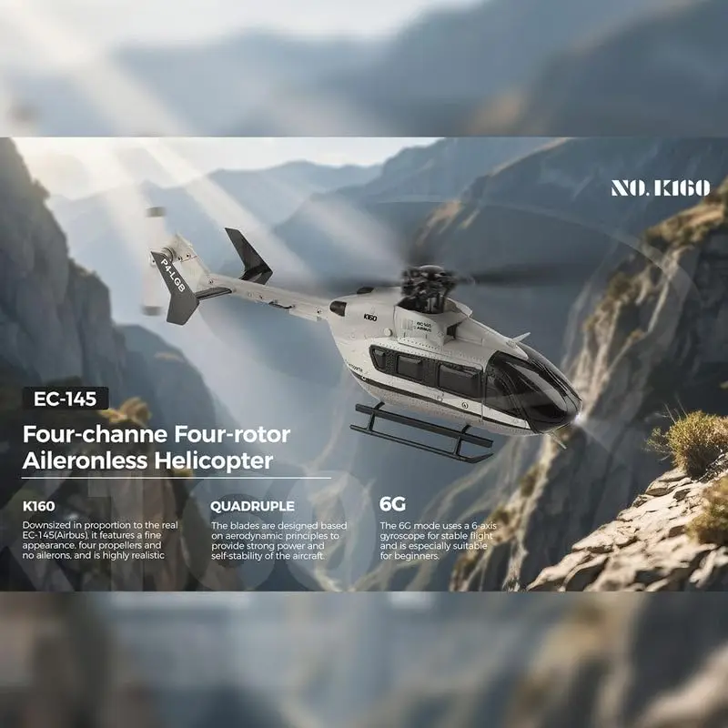 Experience the thrill of flight with this sleek RC helicopter featuring a four-channel remote control and height-holding function for stable flying. Powered by a high-performance brushless motor, it combines durable metal, plastic, and rubber components, delivering approximately 10 to 20 minutes of exciting flight time. Its modern design in a striking K160 color scheme showcases realistic details such as tinted black cockpit windows and elongated light-colored rotor blades for authentic appeal. Ready to operate straight out of the box, it includes a remote controller, USB cable, and instructions, making it perfect for enthusiasts aged 6 and above who seek a reliable and visually impressive flying experience.