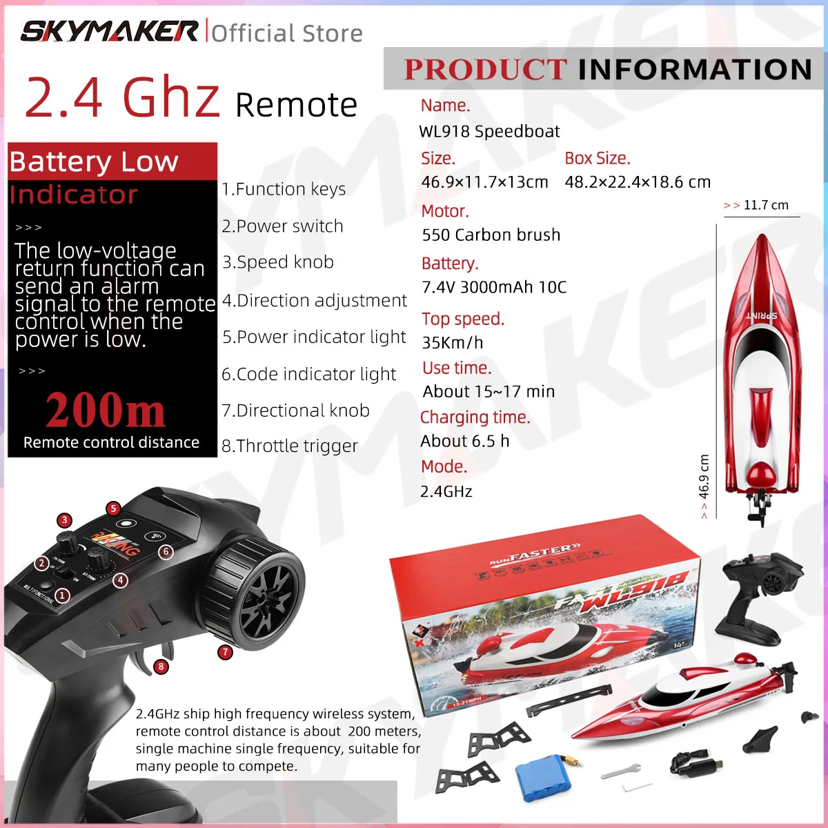 Keys features of the WLtoys WL918 RC boat
