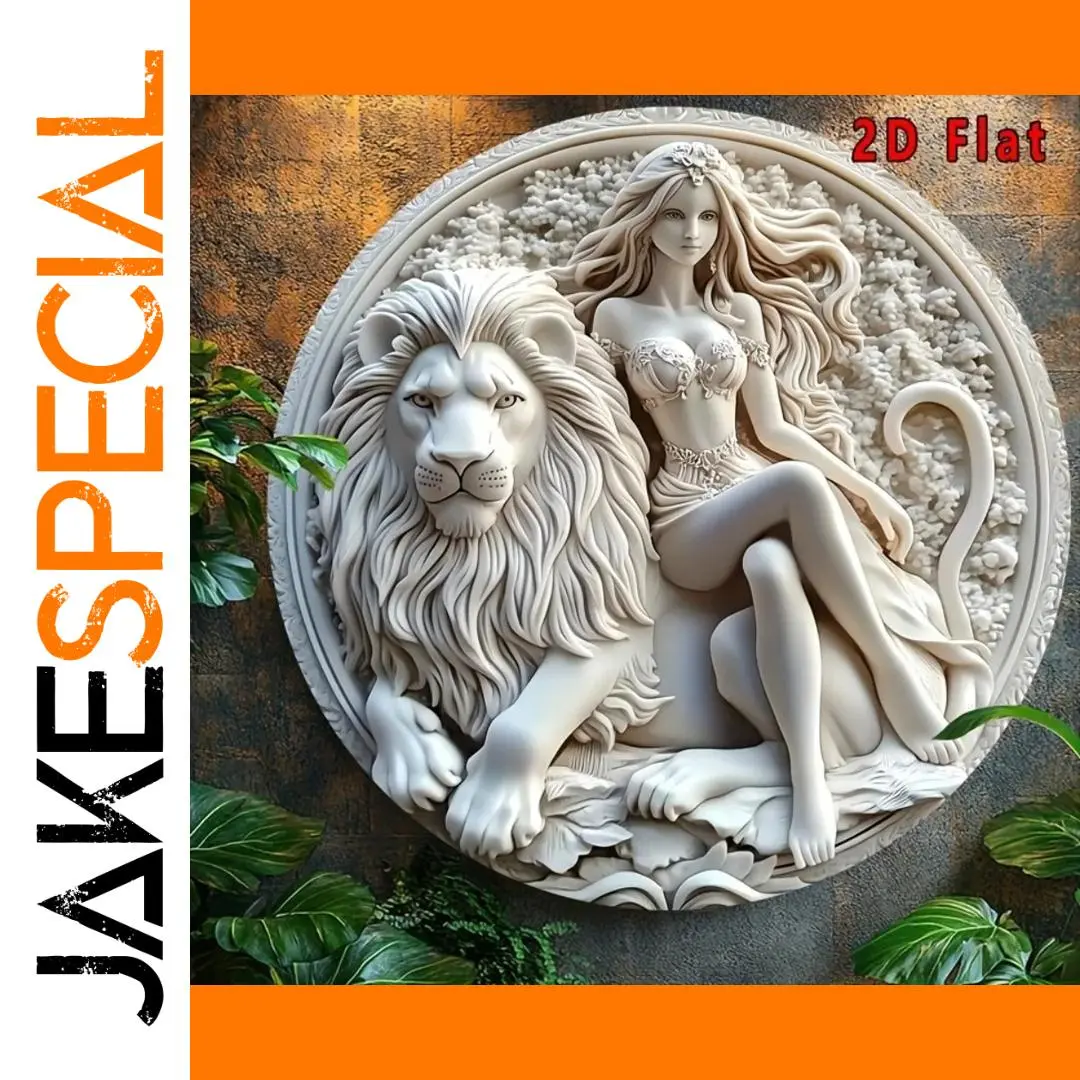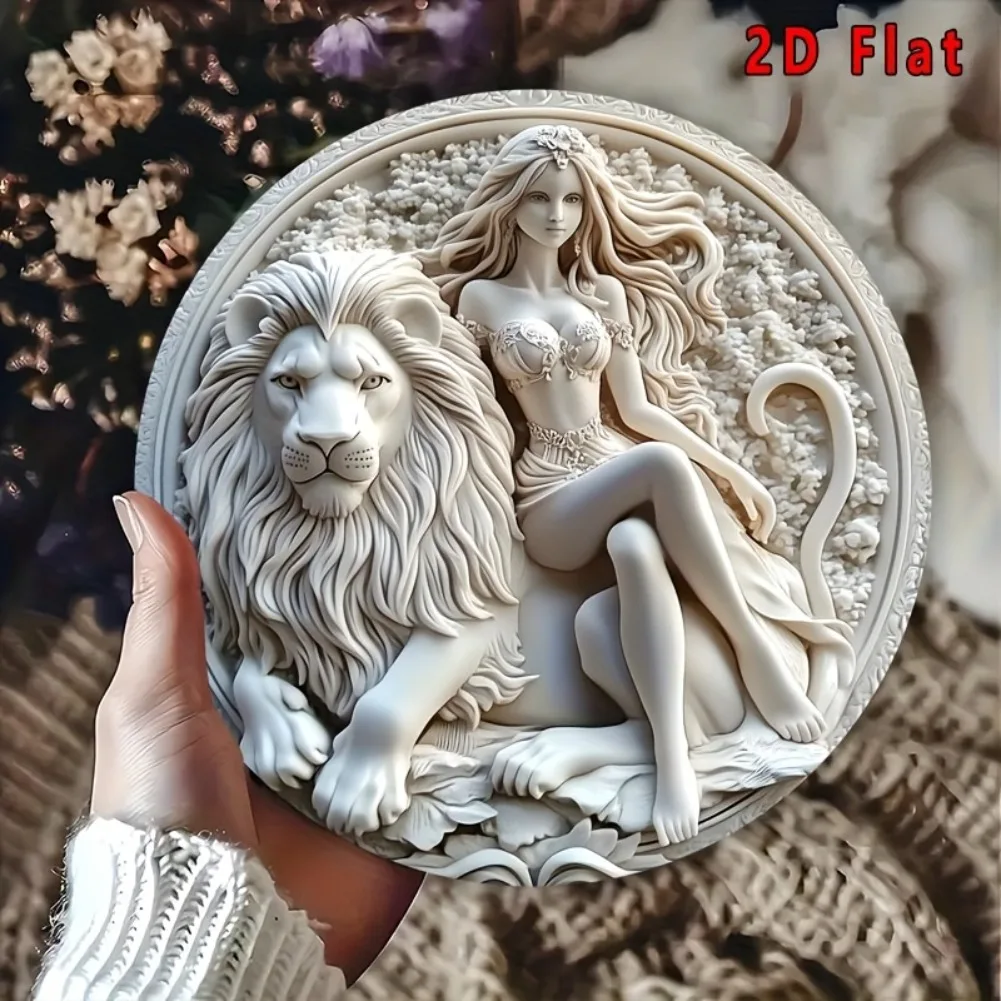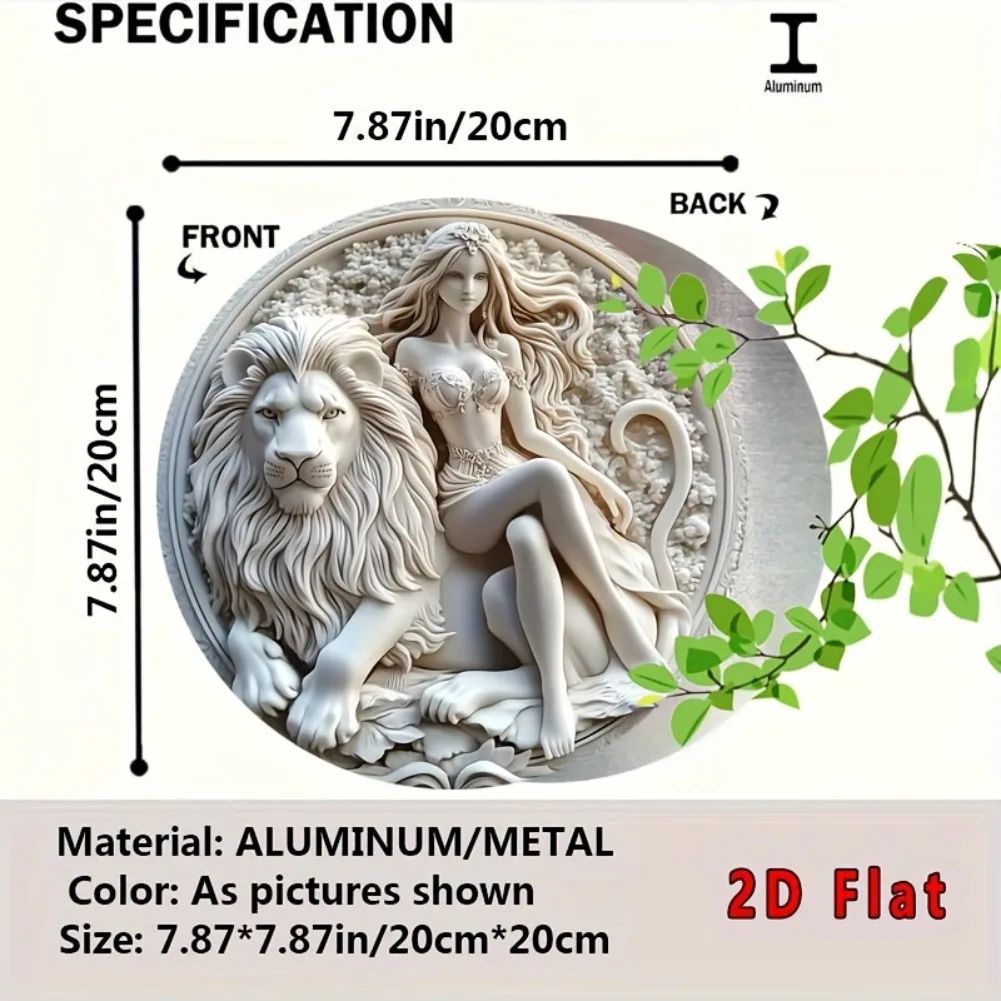 Transform your space with this exquisite round wall art that captures a serene woman and majestic lion in a beautifully detailed scene. Crafted from durable aluminum, this piece measures 30x30cm or 20x20cm, making it perfect for various decorative settings. The intricate craftsmanship highlights flowing, wavy hair, ornate garments, and a regal lion with a richly textured mane. The textured floral or cloud-like background adds depth and artistic elegance. Finished in a pure white tone (color TYA34162), it elevates both modern and vintage decor. Whether mounted on your wall or displayed on a surface, this artwork brings a touch of fantasy, nature, and craftsmanship to your environment. Its versatile design fits perfectly in homes, offices, cafes, and more.