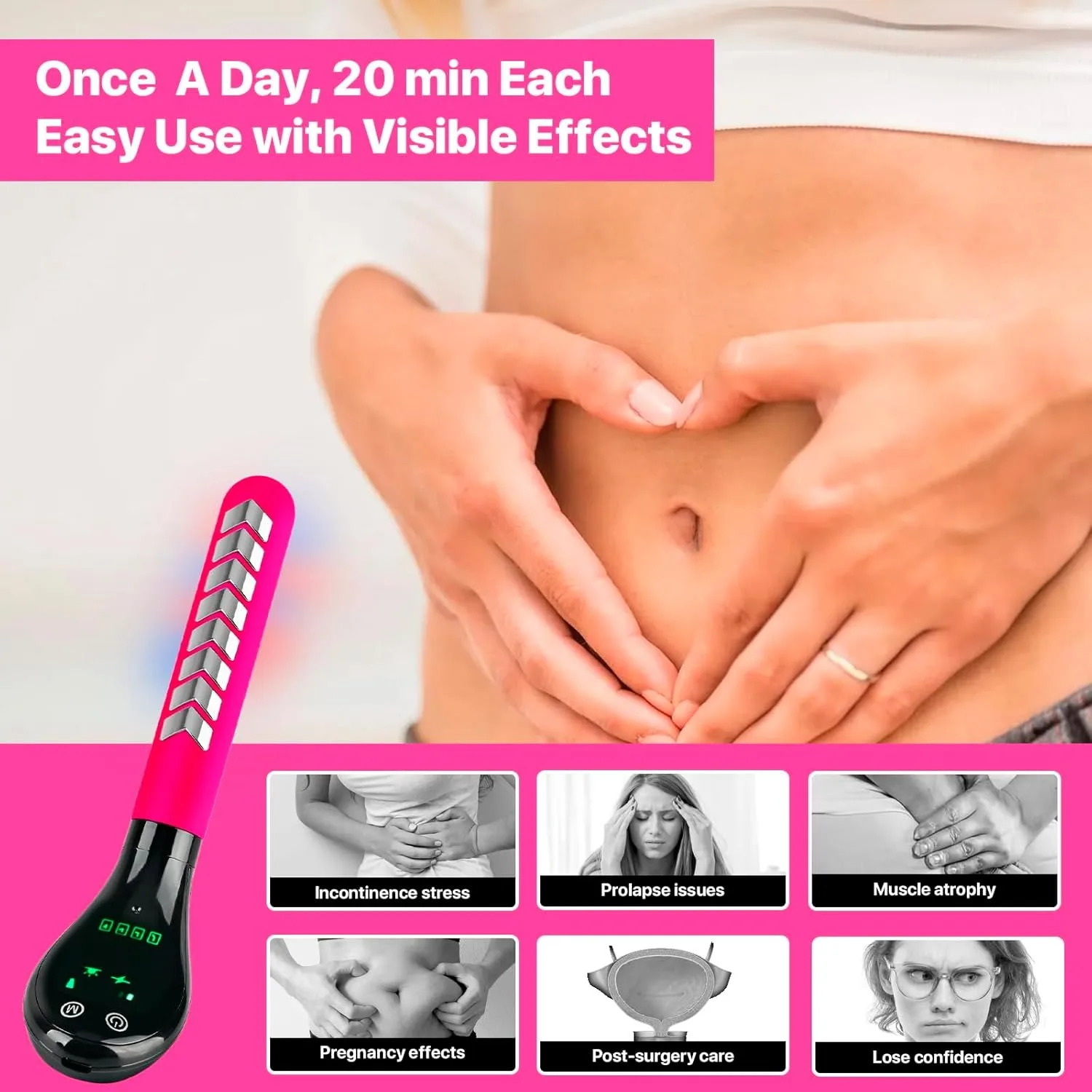 Enhance your pelvic health with this sleek and ergonomic pelvic floor exerciser, designed for women including postnatal and menopausal individuals. Made from soft, hypoallergenic ABS material, it ensures safety and comfort during use. Featuring electrical stimulation and neuromuscular re-education, it effectively strengthens pelvic muscles to help treat urinary incontinence. Compact and portable, this device is perfect for daily routines at home or while traveling. Available in vibrant pink, elegant purple, and classic white, it offers a modern, user-friendly design with a digital display for easy control. Experience confident, comfortable wellness anytime, anywhere.