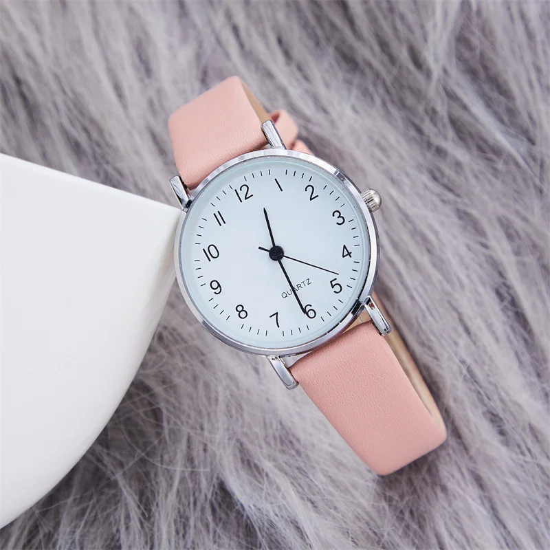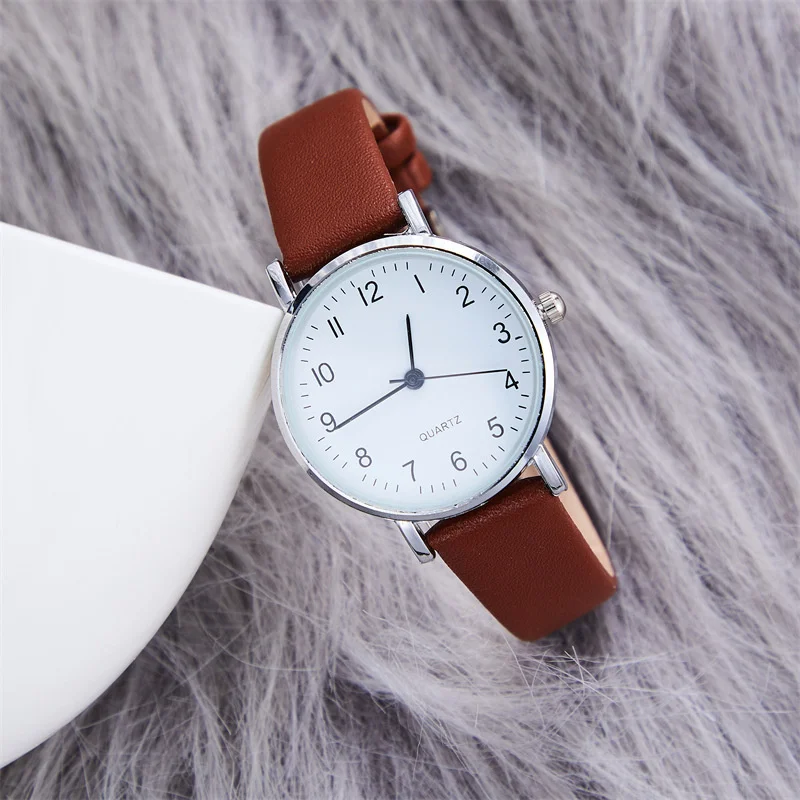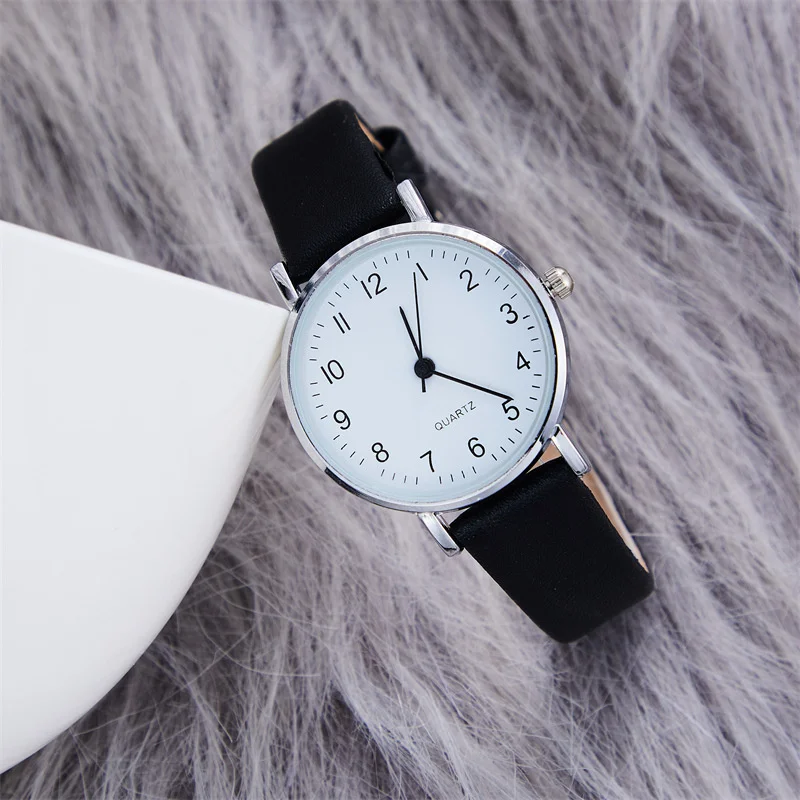 Experience timeless style with this beautiful women's quartz watch, designed to complement any outfit effortlessly. The sleek 34mm round alloy case, with its polished silver finish, adds a sophisticated touch, making it perfect for daily wear or dressier occasions. The minimalist white dial features clear black Arabic numerals, providing easy readability and a classic aesthetic. Lightweight at just 20 grams, this watch offers comfortable all-day wear. The adjustable imitation leather strap, 14mm wide and 235mm long, fits most wrists comfortably. Whether you're out for a casual stroll, at the office, or attending a special event, this versatile watch elevates your style effortlessly, becoming your go-to accessory for every moment.