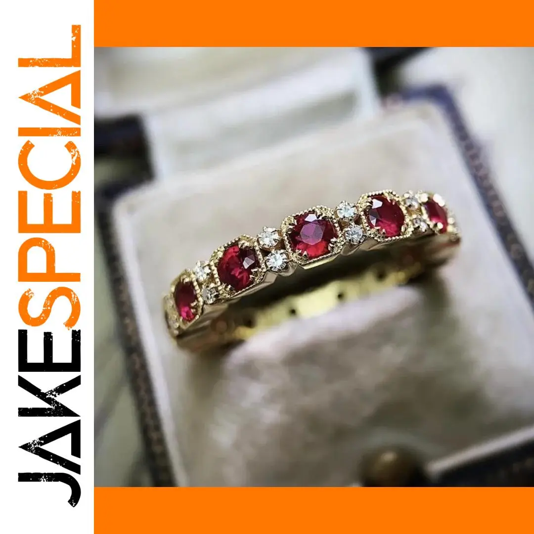 - Adorned with striking red faceted stones and smaller white stones for a luxurious contrast.
