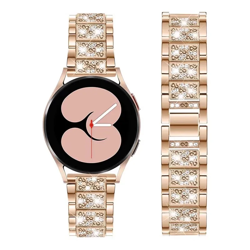 Elevate your style with this women’s stainless steel diamond strap for Samsung Galaxy Watch models 7, 6, 5, 4, Pro, and Classic (44mm, 40mm, 45mm, 46mm). Featuring a sleek, polished finish, the band comes in versatile colors including black, colorful, gold, pink, retro gold, rose gold, and silver, with widths of 20mm or 22mm. The adjustable design ensures a perfect fit, while the luxurious diamond-studded clasp adds a touch of elegance and opulence. Crafted from high-quality stainless steel with no chemical concerns, this bracelet seamlessly combines sophisticated aesthetics with excellent craftsmanship, making it an ideal accessory for those wanting to showcase elegance and modernity in their daily wear.