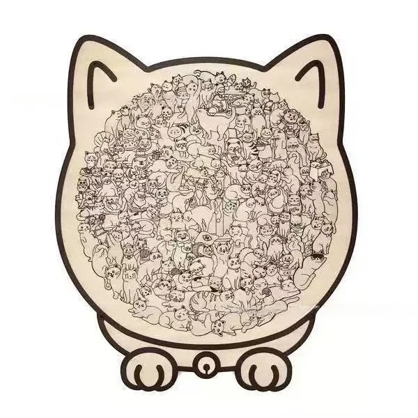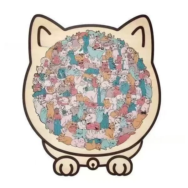 Transform your space with this delightful wooden DIY craft set designed for adults and teens. Featuring 135 Morandi-colored wooden pieces, the set allows you to assemble a beautiful cat-shaped jigsaw puzzle. The natural, smooth wooden surface combined with minimalist and artistic design elements makes this creation perfect for decoration or relaxation. The playful cartoonish cat outline is accented with bold, dark outlines, creating a stylized and charming silhouette. Inside, a border of intricately illustrated wooden pieces in soft pastel and neutral shades adds depth and character. Completing this set gives you a cute, handcrafted piece of art that enhances any home decor with elegance and personality, encouraging you to get creative and enjoy the process.