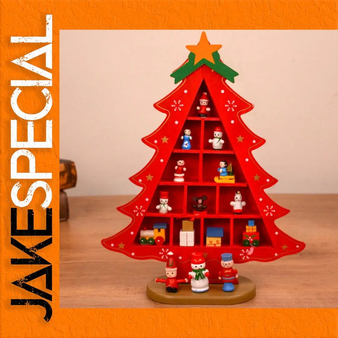 Imagine adding a touch of festive warmth to your holiday decor with this beautifully crafted wooden Christmas tree ornament. Its flat, two-dimensional design features vibrant colors, including bright red and lush green, with whimsical white snowflakes, dots, and star accents that evoke a joyful holiday spirit. At the top, a cheerful orange star crowns the tree, capturing the essence of Christmas traditions. The miniature shelves and small figurines—Santa, snowman, snowgirl, elf, and reindeer—bring playful charm to your display, creating a cozy Christmas scene. Its durable wooden material and smooth painted finish make it ideal for enhancing your home or shop window displays, desktop decor, or mall setups during the festive season. This ornament promises to delight children and adults alike, fostering warmth and holiday cheer.