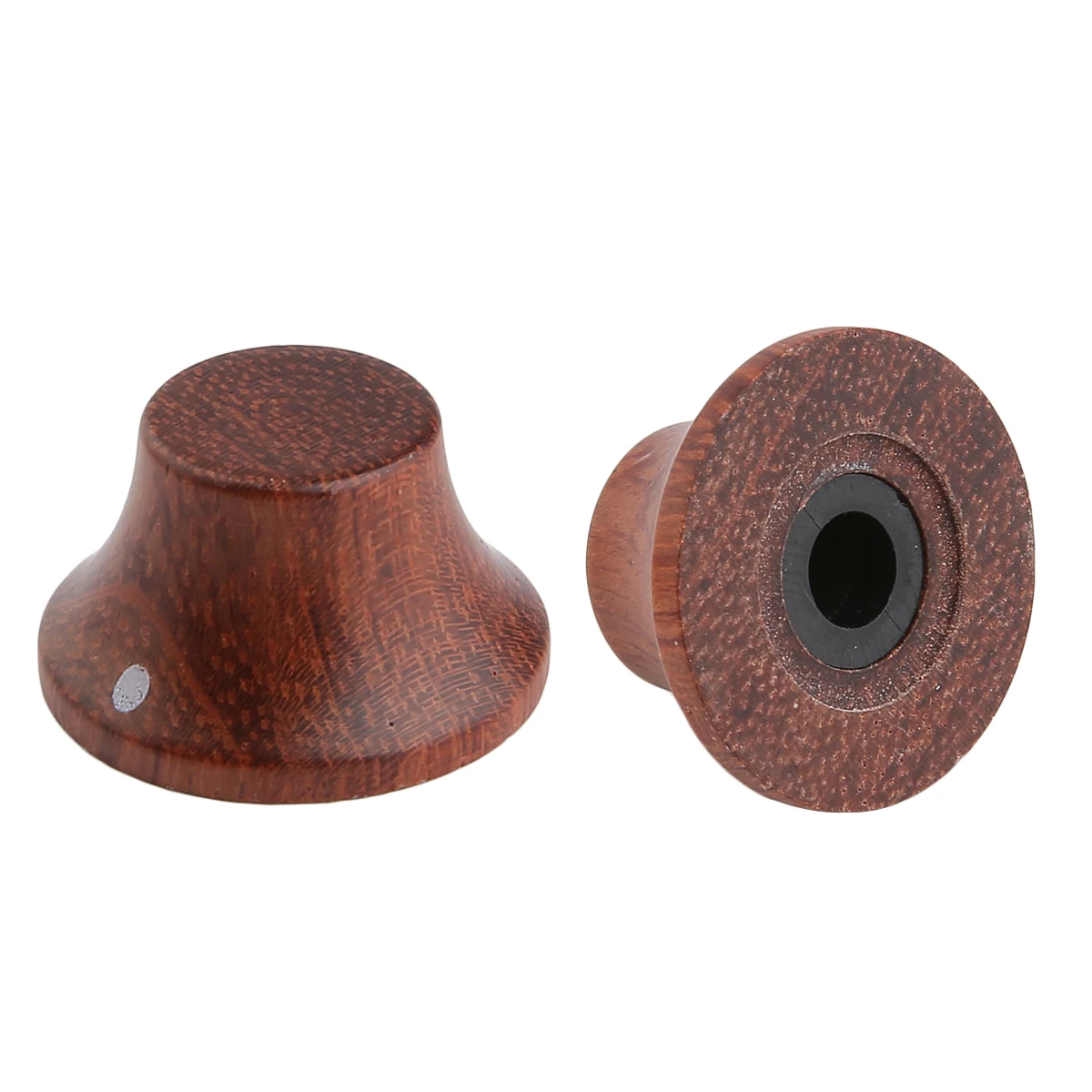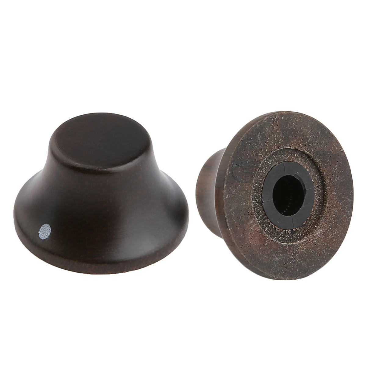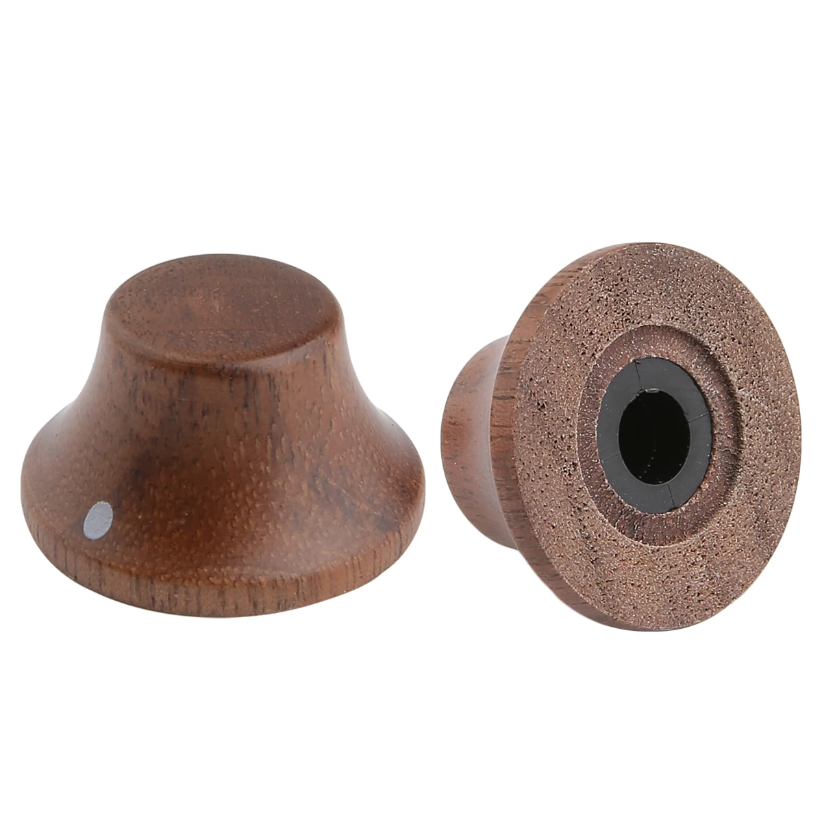Transform the look and feel of your LP or Strat style guitar with this set of premium wooden knobs. Crafted from high-quality natural wood, these knobs combine durability with aesthetic appeal, showcasing rich grain patterns and smooth finishes. Available in a variety of wood types including Bubinga, Ebony, Rosewood, Maple, and Walnut, each set offers a unique earthy tone to match your instrument's style. Designed for easy press-on installation, they fit 5.9mm split shaft 18-spline metric pots and some CTS pots. Their sleek, rounded shape with a flat bottom and indicator dot provides not only a functional control but also a subtle upgrade to your guitar's appearance. Durably constructed, these knobs are perfect for musicians seeking a personalized touch.