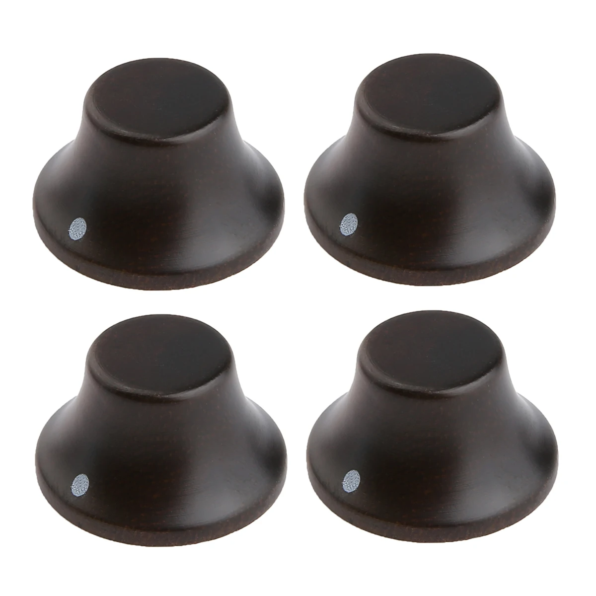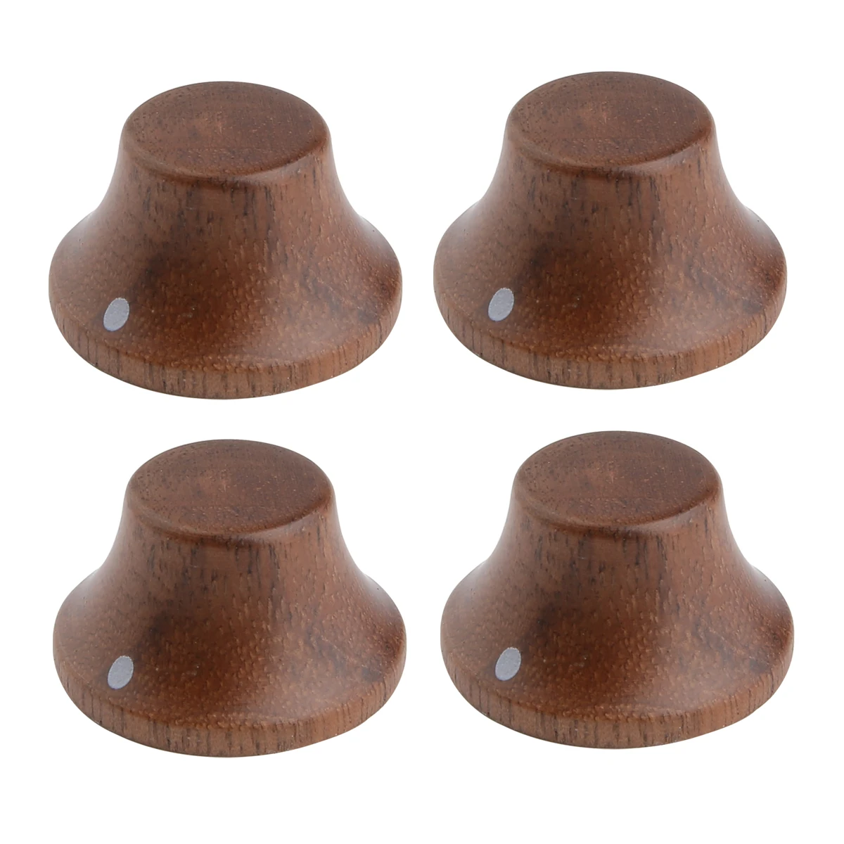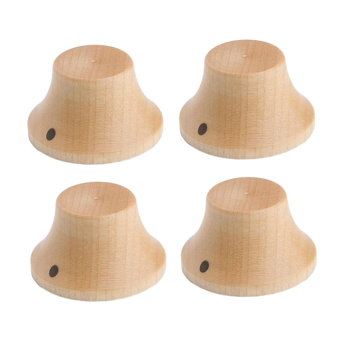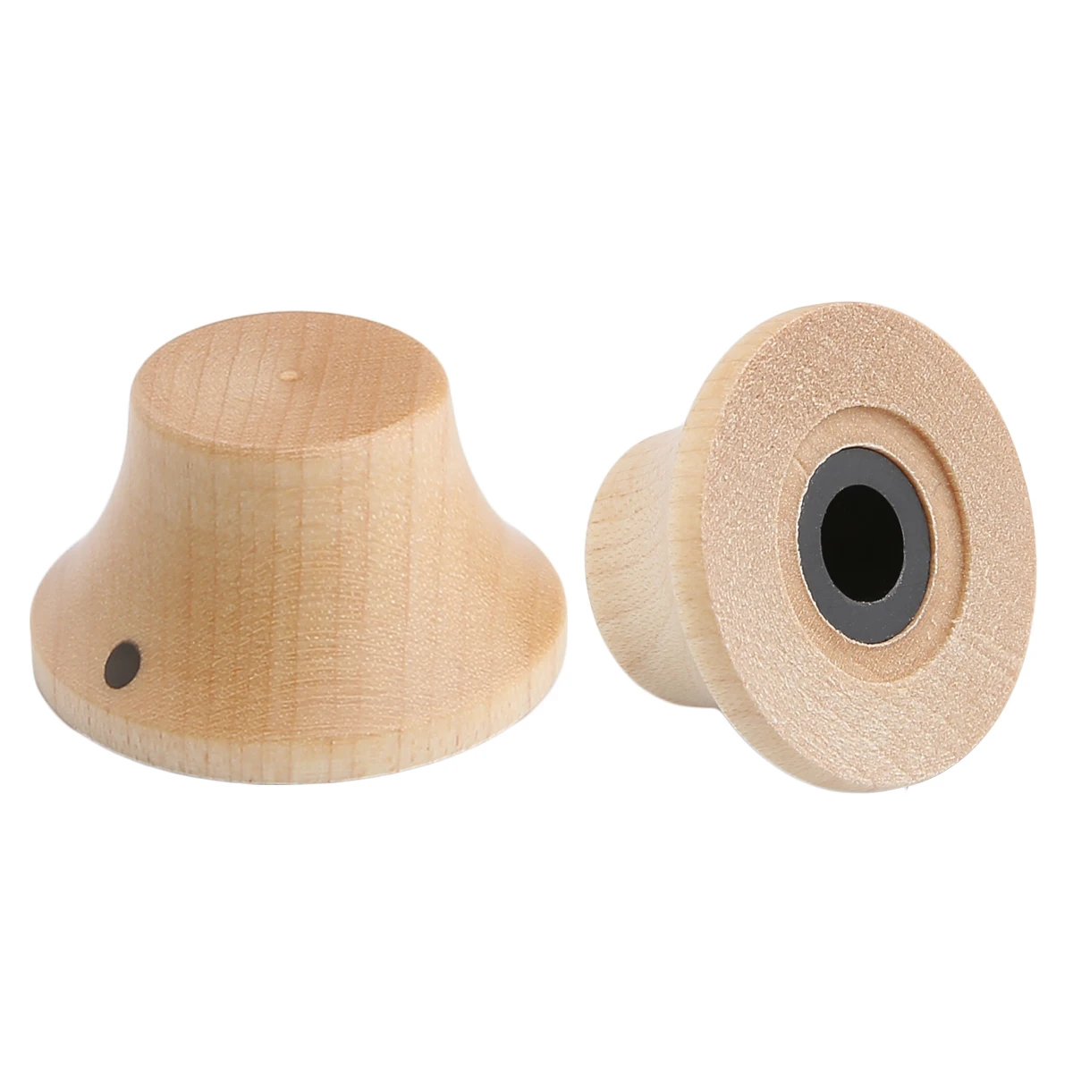 Transform the look and feel of your LP or Strat style guitar with this set of premium wooden knobs. Crafted from high-quality natural wood, these knobs combine durability with aesthetic appeal, showcasing rich grain patterns and smooth finishes. Available in a variety of wood types including Bubinga, Ebony, Rosewood, Maple, and Walnut, each set offers a unique earthy tone to match your instrument's style. Designed for easy press-on installation, they fit 5.9mm split shaft 18-spline metric pots and some CTS pots. Their sleek, rounded shape with a flat bottom and indicator dot provides not only a functional control but also a subtle upgrade to your guitar's appearance. Durably constructed, these knobs are perfect for musicians seeking a personalized touch.