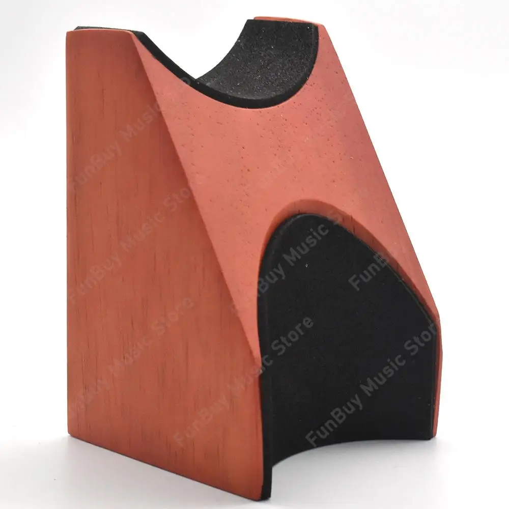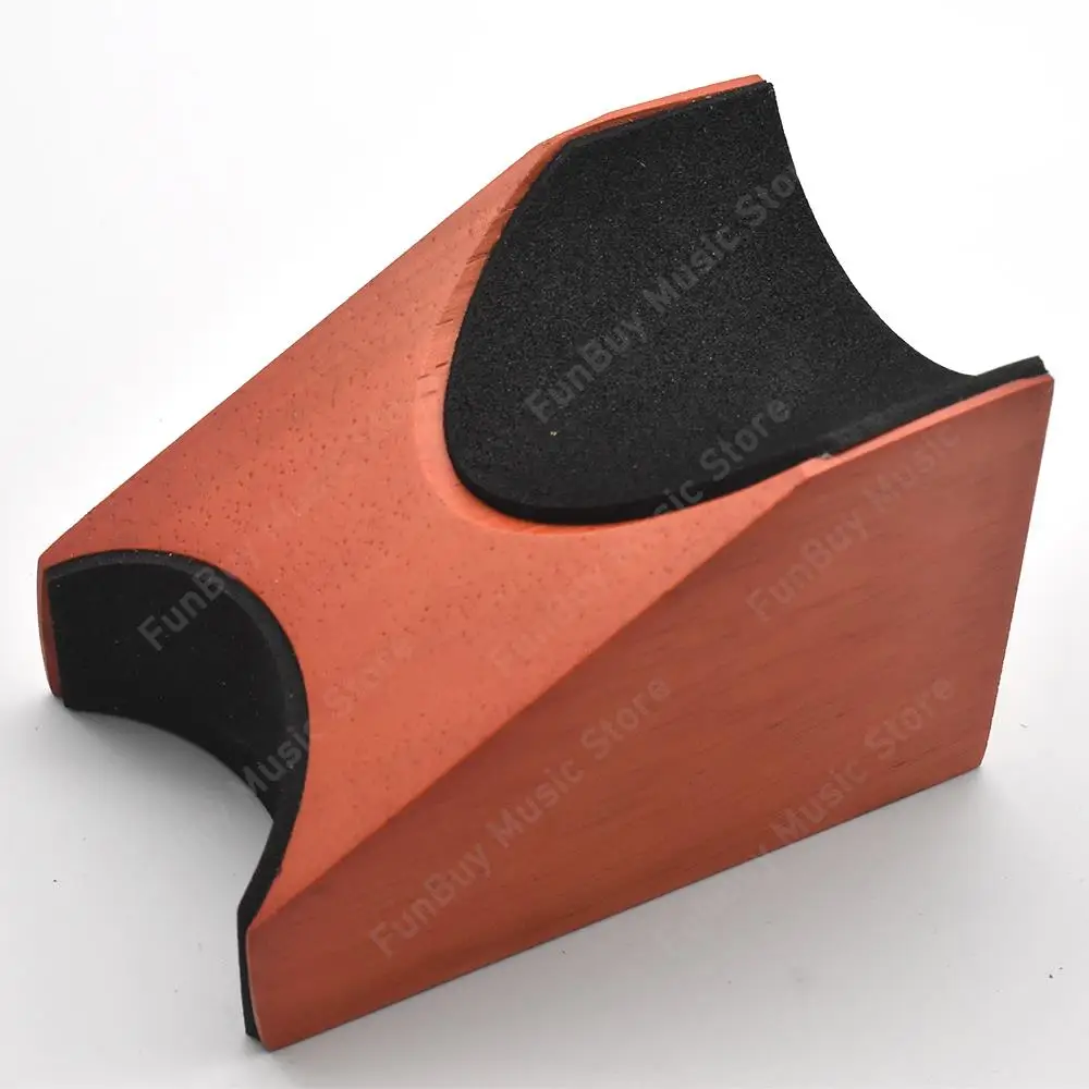 Experience the perfect combination of durability and style with this high-quality wooden guitar neck rest support pillow. Carefully crafted from solid, wear-resistant wood, it provides a stable and anti-scratch surface for your string instruments during repairs, string changes, or cleaning. Its sleek, minimalist design features a curved and sloped shape with a polished finish that highlights the natural grain, adding a touch of sophistication to your workspace. With a double-sided configuration offering different height levels, this support pillow accommodates various instruments such as guitars, basses, violins, ukuleles, banjos, and mandolins. Lightweight yet sturdy, it supports your instrument securely, ensuring safe handling and protection. This accessory is perfect for luthiers, musicians, or passionate hobbyists seeking reliable, professional-grade tool.