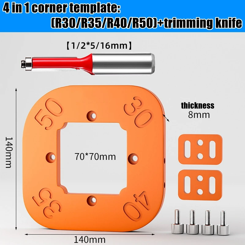 Transform your woodworking experience with this Woodworking Router Corner Radius Templates Jig. Imagine crafting stunning projects with smooth, perfectly curved edges that not only enhance the aesthetic but also improve functionality. Whether you're a hobbyist seeking personal gratification or a professional aiming for superior results, this jig is designed to help you achieve flawless outcomes with every use. With a variety of templates and a user-friendly setup, you can dive into your woodwork projects quickly and easily, enjoying every moment of creativity and craftsmanship.