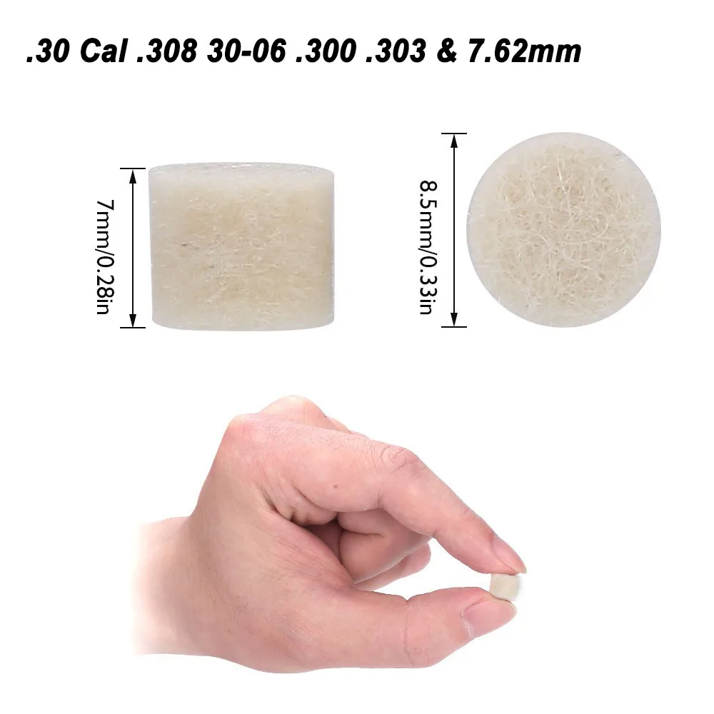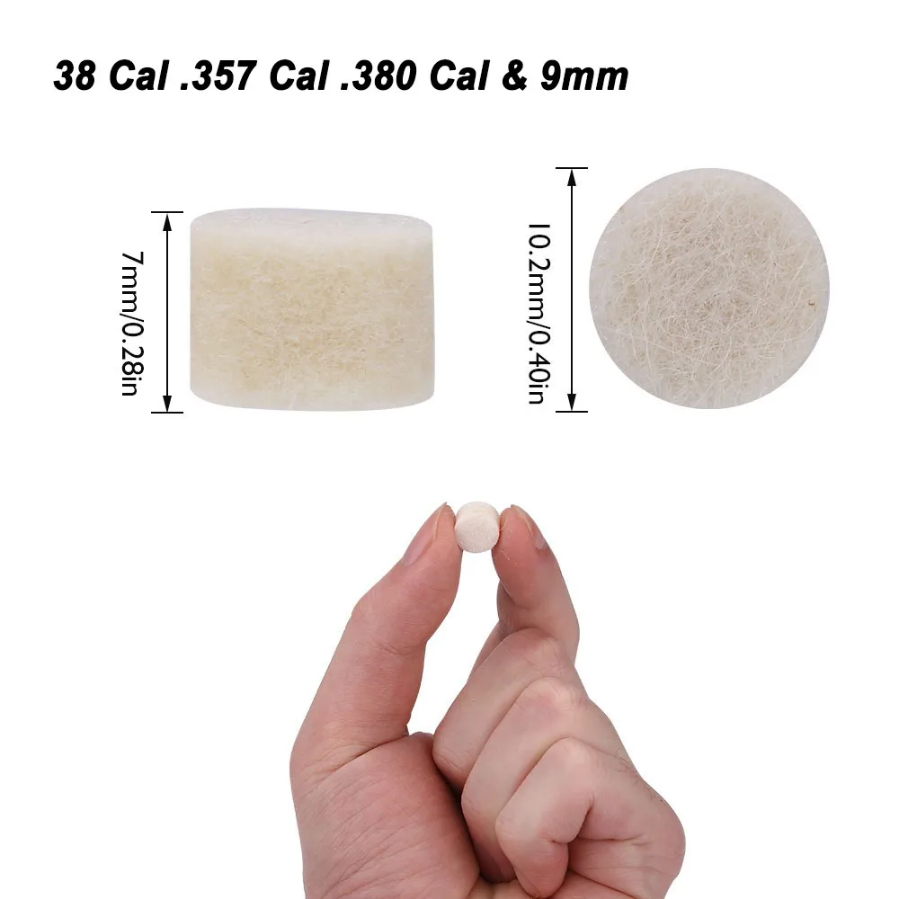 - High-quality compressed wool fibers provide excellent dirt and solvent absorption, efficiently removing carbon buildup in chambers of various calibers like .22, .223, and .45.