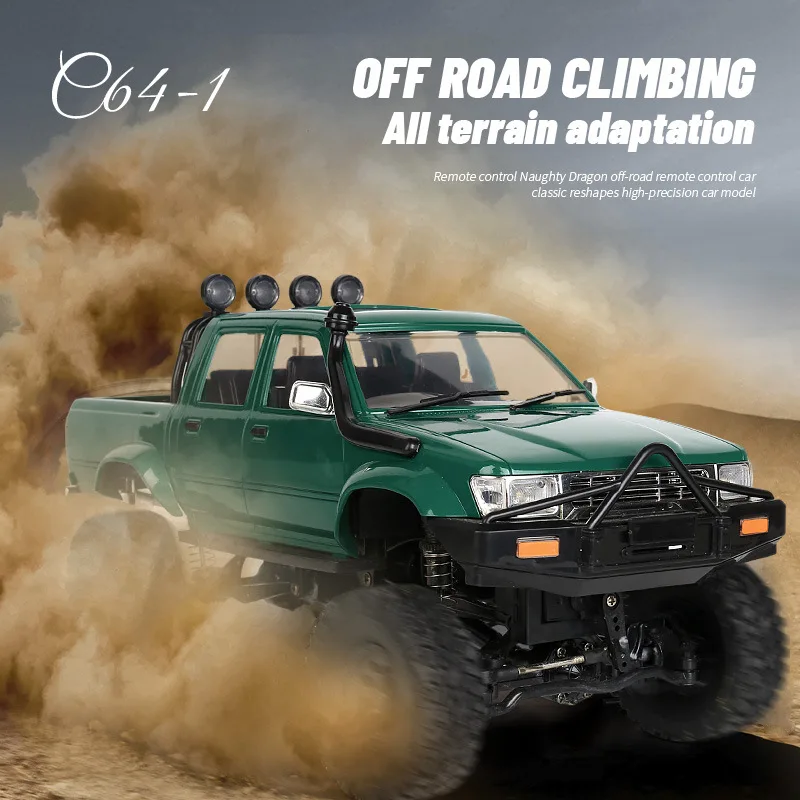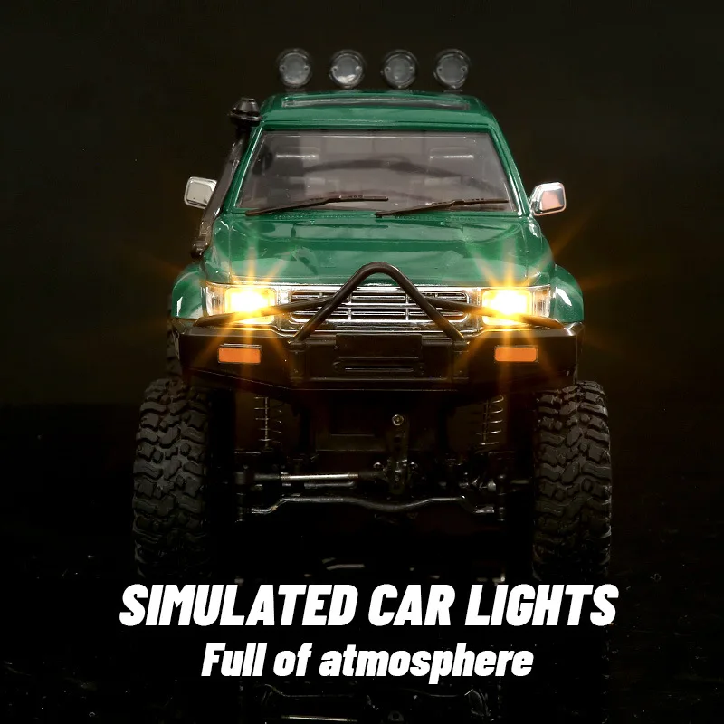 Experience off-road adventure with this rugged remote-controlled vehicle, featuring a detailed white exterior with realistic cab design, side mirrors, and a front grille. Equipped with large, black rubber tires with deep treads, durable plastic body, and visible suspension system with coil springs and shock absorbers for tackling tough terrain. Four auxiliary roof lights enhance its adventurous look. Powered by a 7.2V battery, offering 20-30 minutes of playtime, controlled via a 2-channel remote with a 50-meter range. Compatible with multiple colors, including white, green, blue, and red, this ready-to-run model is perfect for ages 14 and up who are passionate about off-road exploration.
