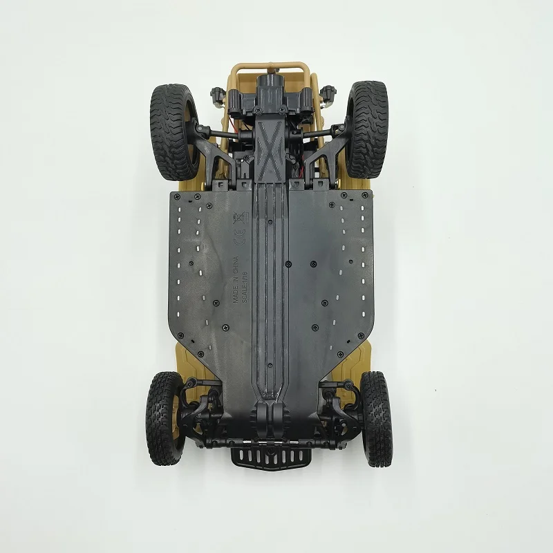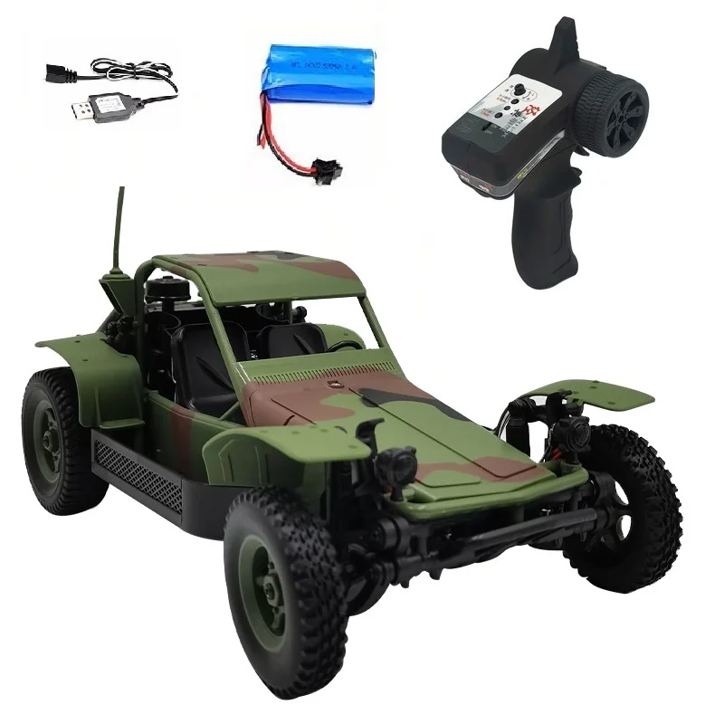 Experience the thrill of commanding this impressive scale 1:16 off-road military-style RC vehicle, designed for enthusiasts who crave adventure and tactical excitement. With a matte military green and brown camouflage finish, this vehicle exudes a rugged, combat-ready appearance. Its sturdy body features detailed contours, protective wheel arches, and large textured off-road tires perfect for rough terrains. The prominent front hood, spotlights, and tactical accents elevate its realistic military aesthetic. Powered by a high-speed 280 magnetic motor reaching 23,000 rpm, it delivers exhilarating speeds up to 18 km/h. The included high-capacity 7.4V 600mAh lithium battery provides about 20-30 minutes of dynamic play, while the 2.4GHz remote control offers a control range of up to 80 meters for freedom of movement. Ideal for collectors and remote control enthusiasts alike.