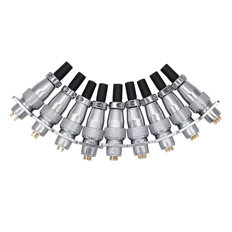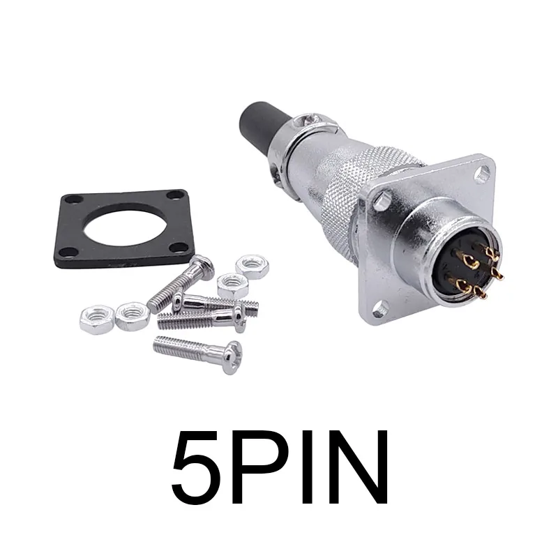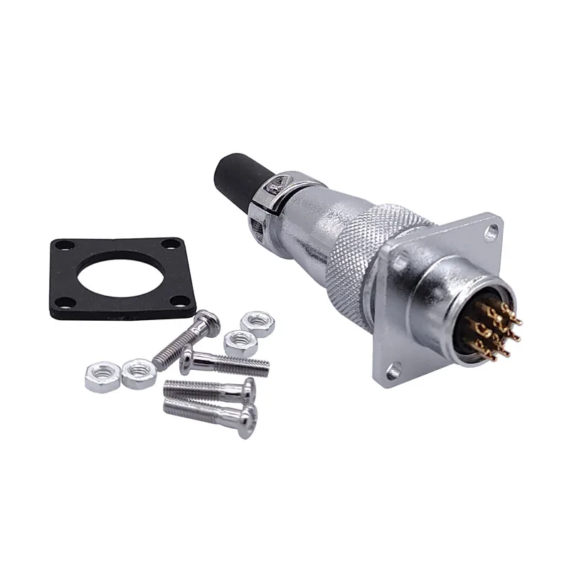 Experience reliable electrical connections with the WS16 plug and socket connector, featuring 2 to 10 pins in male and female configurations designed for 24V applications. Crafted with durable, silver-colored cylindrical bodies with knurled surfaces for easy handling, these connectors boast gold-plated pins arranged in circular patterns for optimal conductivity. Equipped with black insulative bases, strain relief caps for protection against dust and moisture, and mounting flanges with four drill holes for secure installation, they combine industrial robustness with safety features like anti-leakage and reverse installation support. Certified with CE standards, these adapters are ideal for versatile, high-conductivity, waterproof electrical setups in demanding environments.