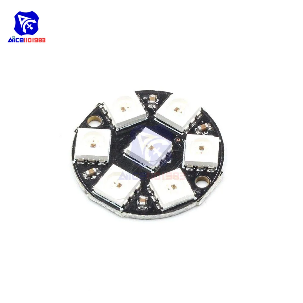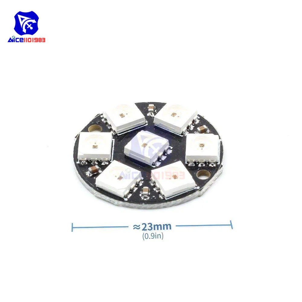 Imagine adding a stunning, colorful glow to your electronics projects with this elegant LED ring module. The sleek black circular base perfectly complements its seven evenly spaced, square-shaped LED units, each with a transparent lens that diffuses vibrant hues. When activated, these LEDs produce bright, eye-catching colors like blue, green, yellow, and purple, creating captivating visual effects. Designed to be highly programmable and modular, this LED ring offers reliable performance with a refresh rate of at least 400Hz, supporting complex displays with up to 1024 cascading pixels. Its compact size of an 11.5mm radius makes it perfect for decorative installations, custom lighting, and innovative artistic creations.