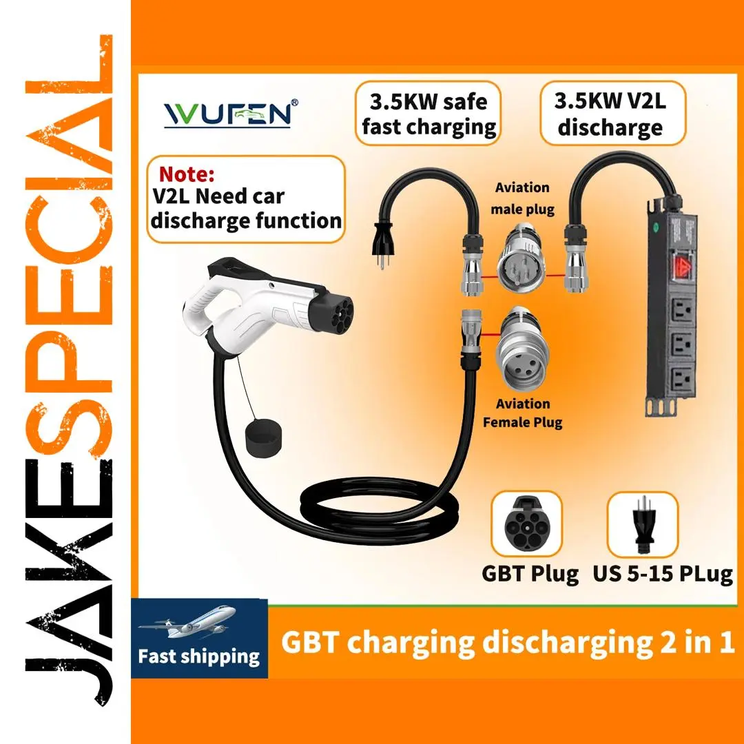 Experience the convenience of this innovative WUFEN 2 in 1 electric vehicle charger and discharger, designed to simplify your EV management. Its intelligent switching feature automatically detects whether your vehicle needs charging or discharging, seamlessly switching modes without manual intervention. Crafted with durable ABS+PC materials, the device boasts a sleek white finish complemented by a robust black cable that enhances its modern aesthetic. With a generous 5-meter cable, it offers effortless flexibility for various usage scenarios. Rated IP55 for water and dust resistance, this portable device is built to withstand different environments. Supporting US standard 5-15 plugs, it operates at 110V with a power output of 1.76KW and a 16A current, making it ideal for home and on-the-go applications. Make your EV experience smarter with this versatile, user-friendly device.