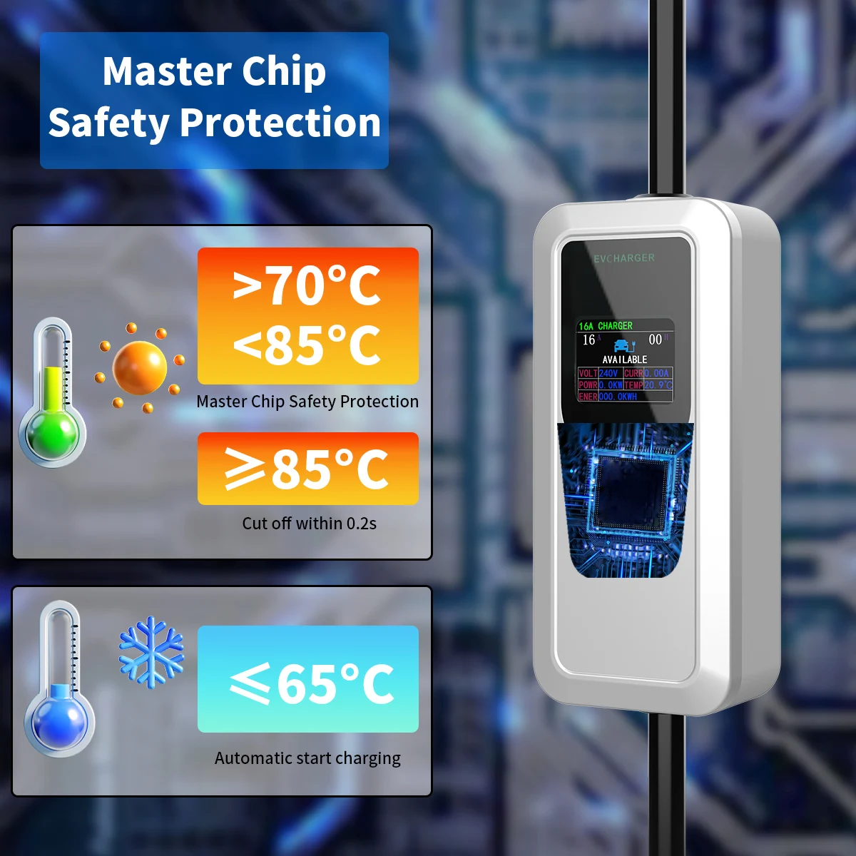 The WUFEN portable EV charger offers a reliable 3.5 kW power output at 220V-250V, with a maximum current of 16A, supporting both Type1 and Type2 connections. Crafted from durable ABS+PC materials, it features a 5-meter flexible cable, IP54 dust and water resistance, and adjustable current settings of 16A, 13A, 10A, and 8A. Compliant with SAE J1772 and IEC 62196-2 standards, this modern, compact charger is perfect for convenient and efficient electric vehicle charging on the go. Its sleek design and practical features help you feel confident and in control whenever you need to power up your vehicle.