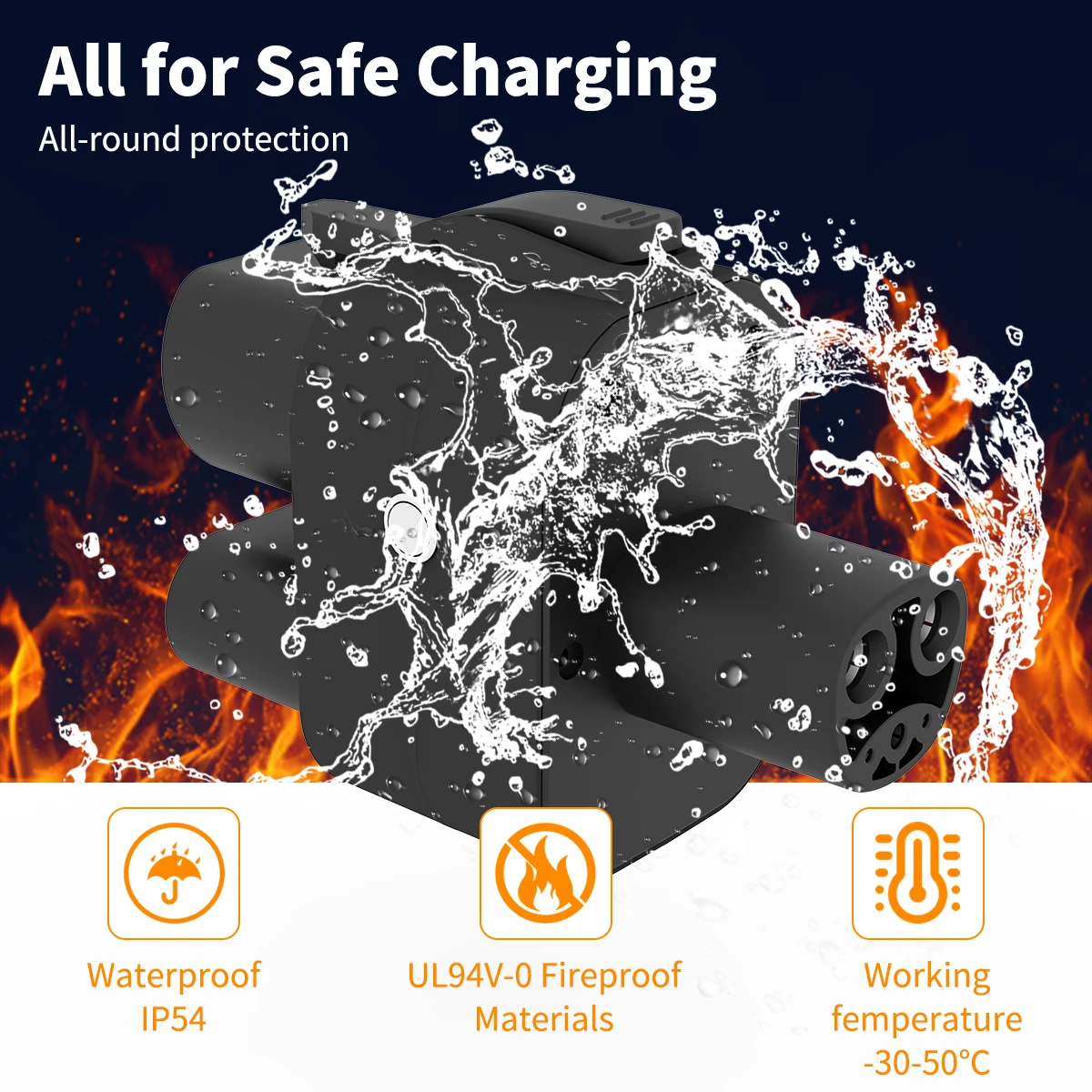 - Equipped with a silicon rubber sealing gasket and a safety temperature kill switch, this adapter automatically halts charging if internal temperature exceeds 90°C, safeguarding both device and users.