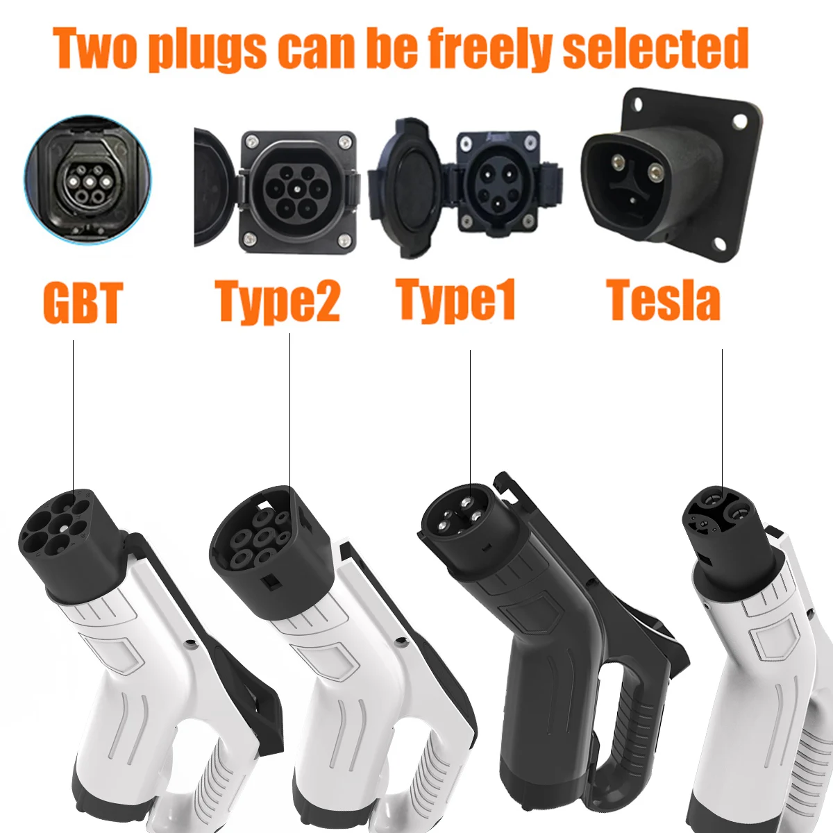 - Features dual connectors compatible with Type 2 and GBT Type 1 standards, suitable for various electric vehicles.
