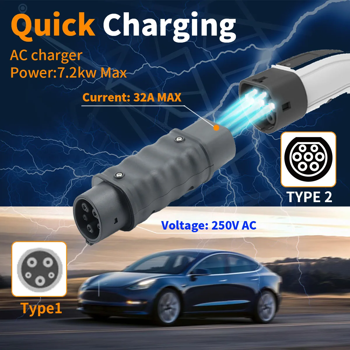 - Designed specifically with a Type 2 to Type 1 plug configuration, accommodating US electric vehicles requiring this standard for optimal compatibility.