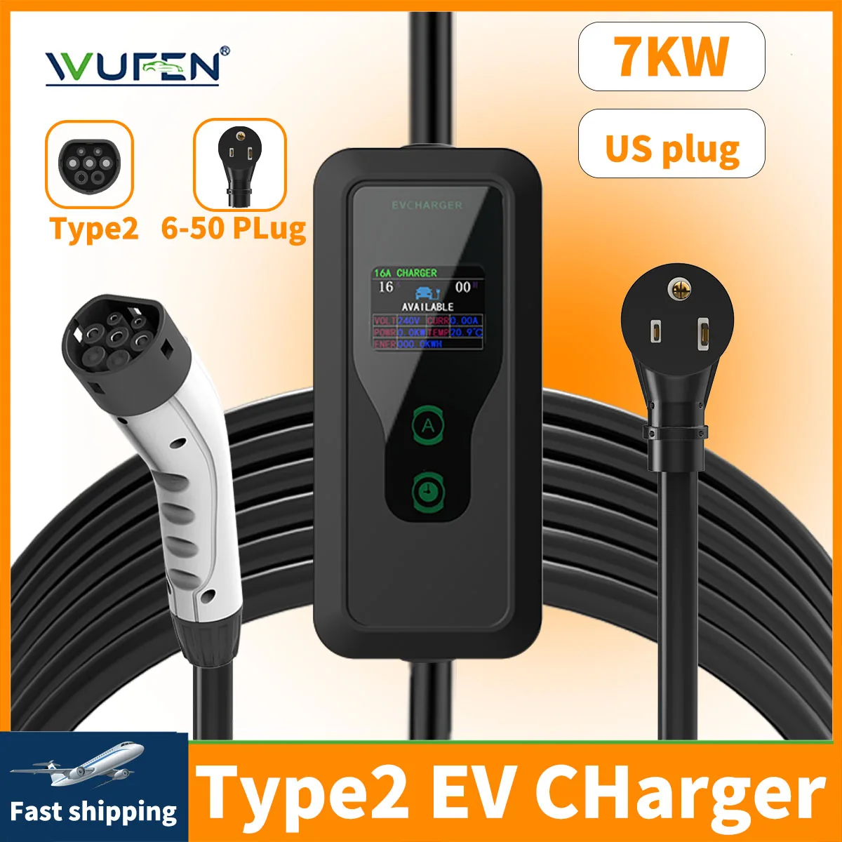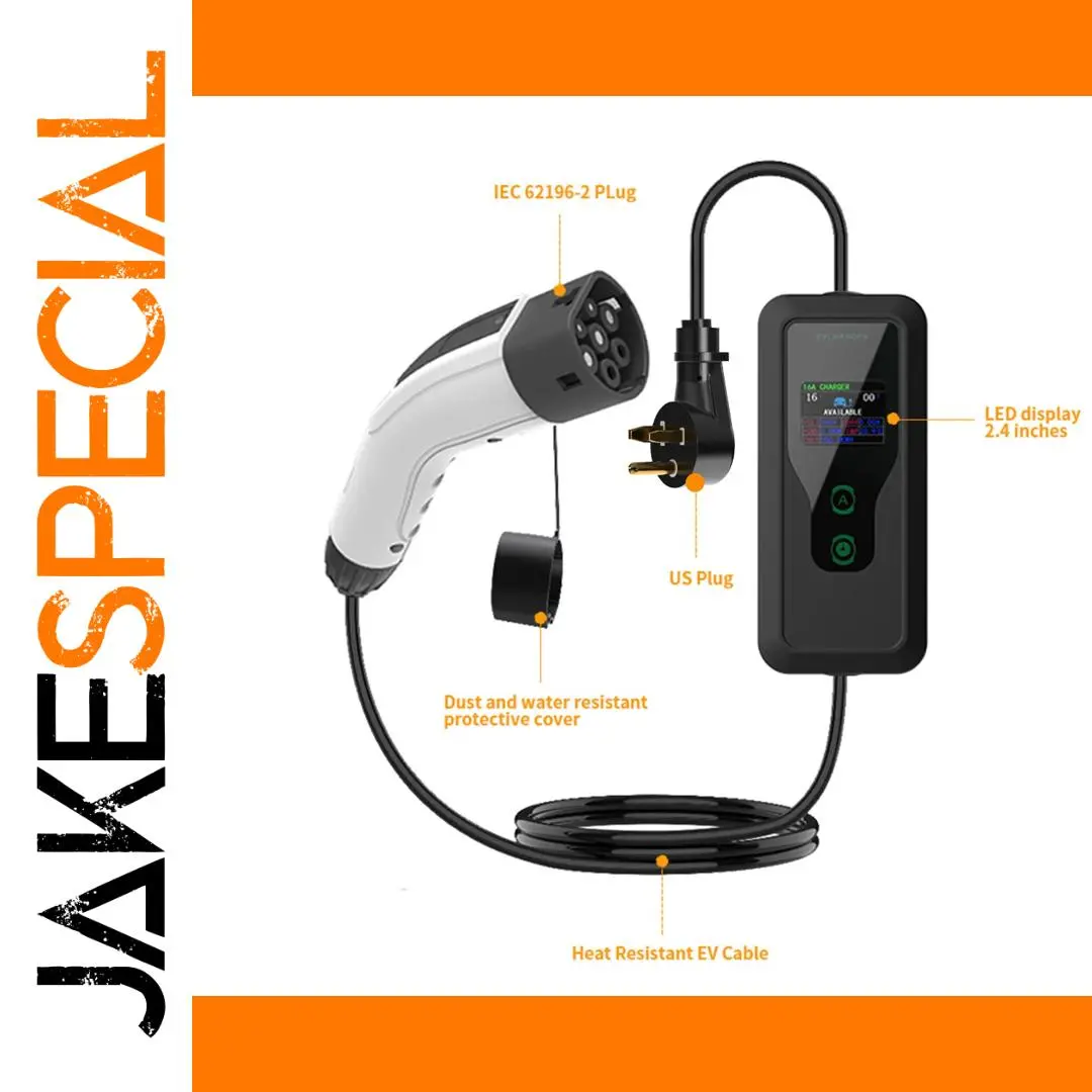 - This charger delivers up to 7kW power at 220V-240V, compatible with most electric vehicles for efficient and fast charging. It operates within a current range of 16A to 32A, ensuring versatile usage.
