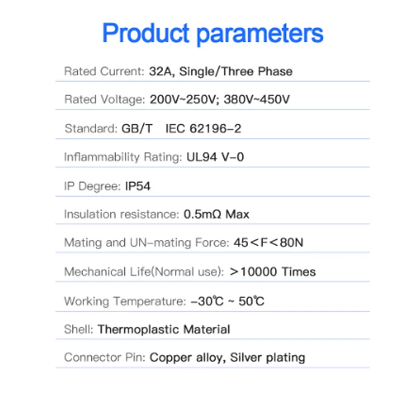 - Supports 7.2KW at 220V (32A) and 22KW at 480V (32A), with a total weight of just 0.5 kg for portability and ease of installation.