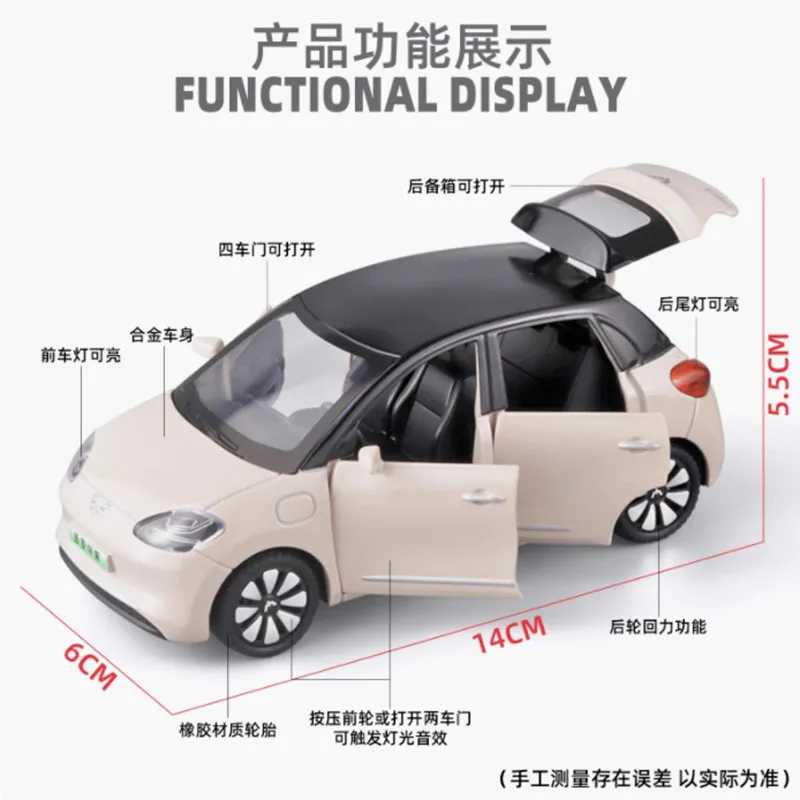 This Wuling Binguo Diecast Model Car offers an exquisite representation of the charming vehicle, crafted at a precise 1/32 scale. Available in three enchanting colors—light beige, bright lime green, and pastel pink—this model captures the playful essence of the Wuling Binguo. Its rounded front design houses large, expressive headlights and a stylish grille, enhancing its inviting appearance. Constructed from a blend of high-quality metal and plastic, it balances durability with a lightweight feel, making it perfect for display or as a thoughtful gift. With intricate detailing and vibrant colors, this model is a captivating addition to any collection, allowing enthusiasts to appreciate its unique design daily.