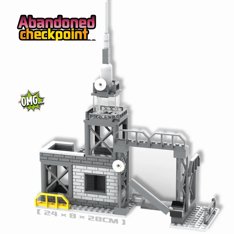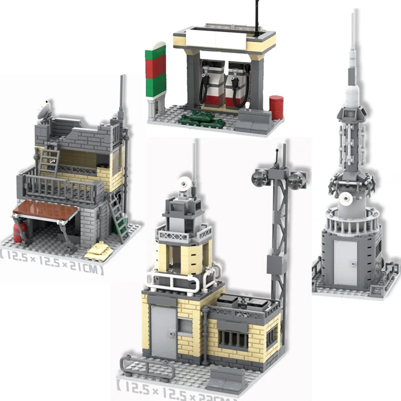 Transform your collection with this highly detailed Abandoned WW2 Military Scene Building Set. Crafted from durable ABS plastic, it features realistic, weathered-looking buildings like a gas station, command base, checkpoint, information station, and power tower. The muted gray, beige, and white tones are accented with subtle touches of red, green, and black, creating an authentic wartime ambiance. Each piece showcases textured brick walls, ladders, rooftop antennas, and piping details, capturing aged utilitarian durability. This set offers a rugged, military-inspired aesthetic for imaginative scenes, allowing you to recreate realistic wartime environments. Perfect for military enthusiasts and collectors, it enhances any diorama or display with intricate design and historical authenticity, bringing your military modeling to life.