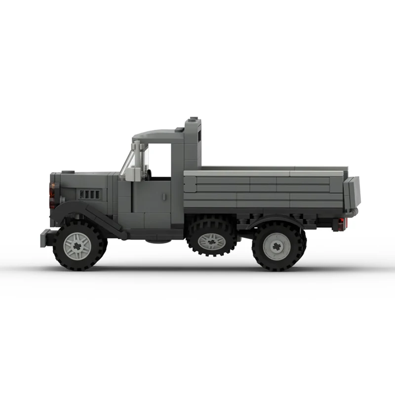 Experience the rugged charm of this WW2 Army Truck Russian Ural-4320 made from detailed interlocking building blocks. Crafted from durable ABS plastic, this model captures the essence of a military off-road vehicle with its boxy, utilitarian design. The gray body features a textured cargo area topped with a brown fence-like barrier, along with realistic details such as round reddish-brown headlights, black tires with intricate hubcaps, and side mirrors. The sturdy construction emphasizes durability and military strength, perfect for displaying or interactive play. Designed for hobbyists and collectors aged 14+, it offers a gratifying assembly process with a PDF manual, bringing this iconic vehicle to life with precision and realism.